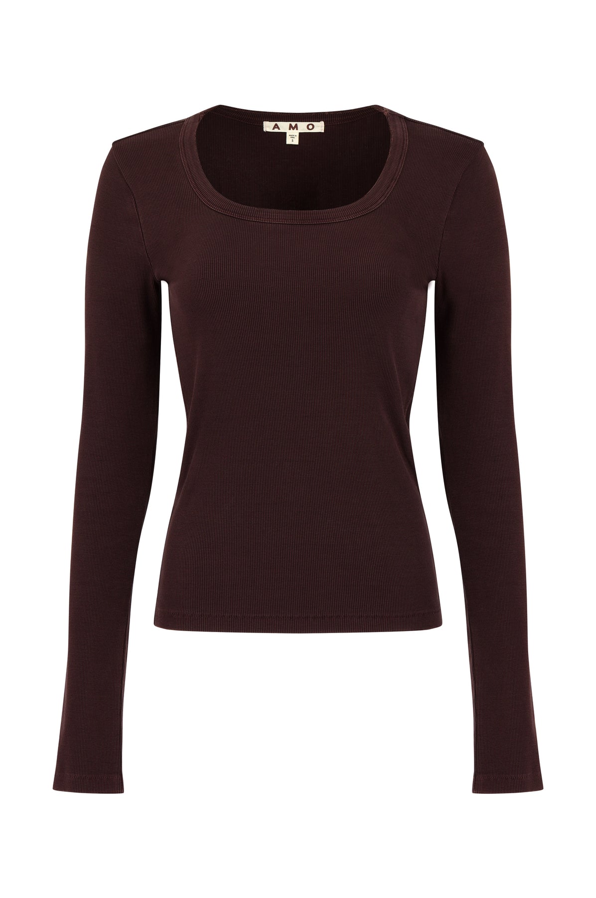 The Angelina Long Sleeve from AMO is a mini rib long sleeve designed with a flattering scoop neckline and a close, body-hugging fit. Intentional distressing throughout adds a touch of lived-in edge to this timeless essential.