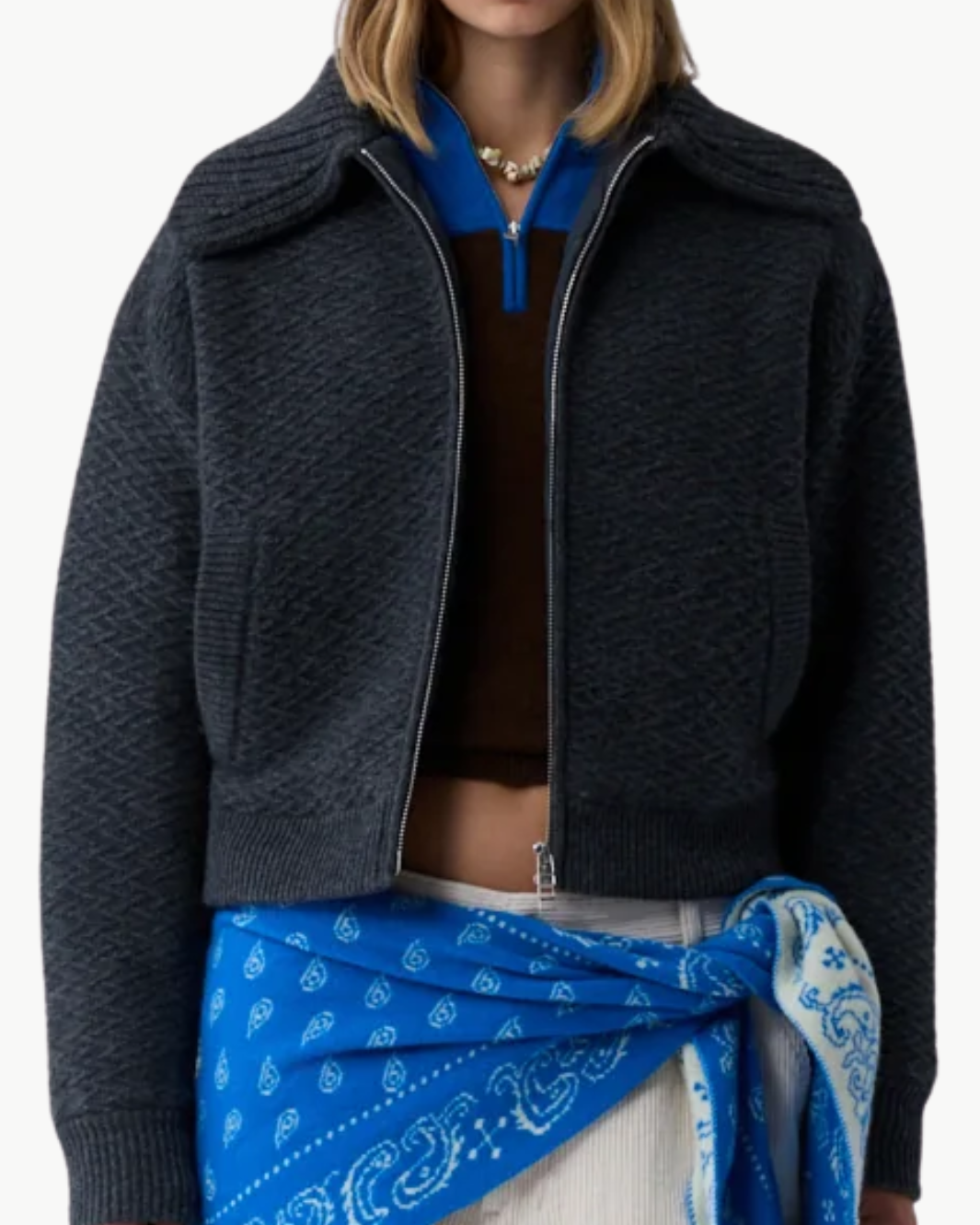 The Cross Country Bomber is a refined cold-weather layer that blends warmth, texture, and a sporty sensibility. Crafted from a heavy-weight wool–cashmere blend, this jacket is designed with a chunky rib polo collar and a quilted, insulated lining that delivers cozy comfort without bulk. Polished details like a two-way zip closure and clean pocket placement make it an elevated take on a classic bomber silhouette.