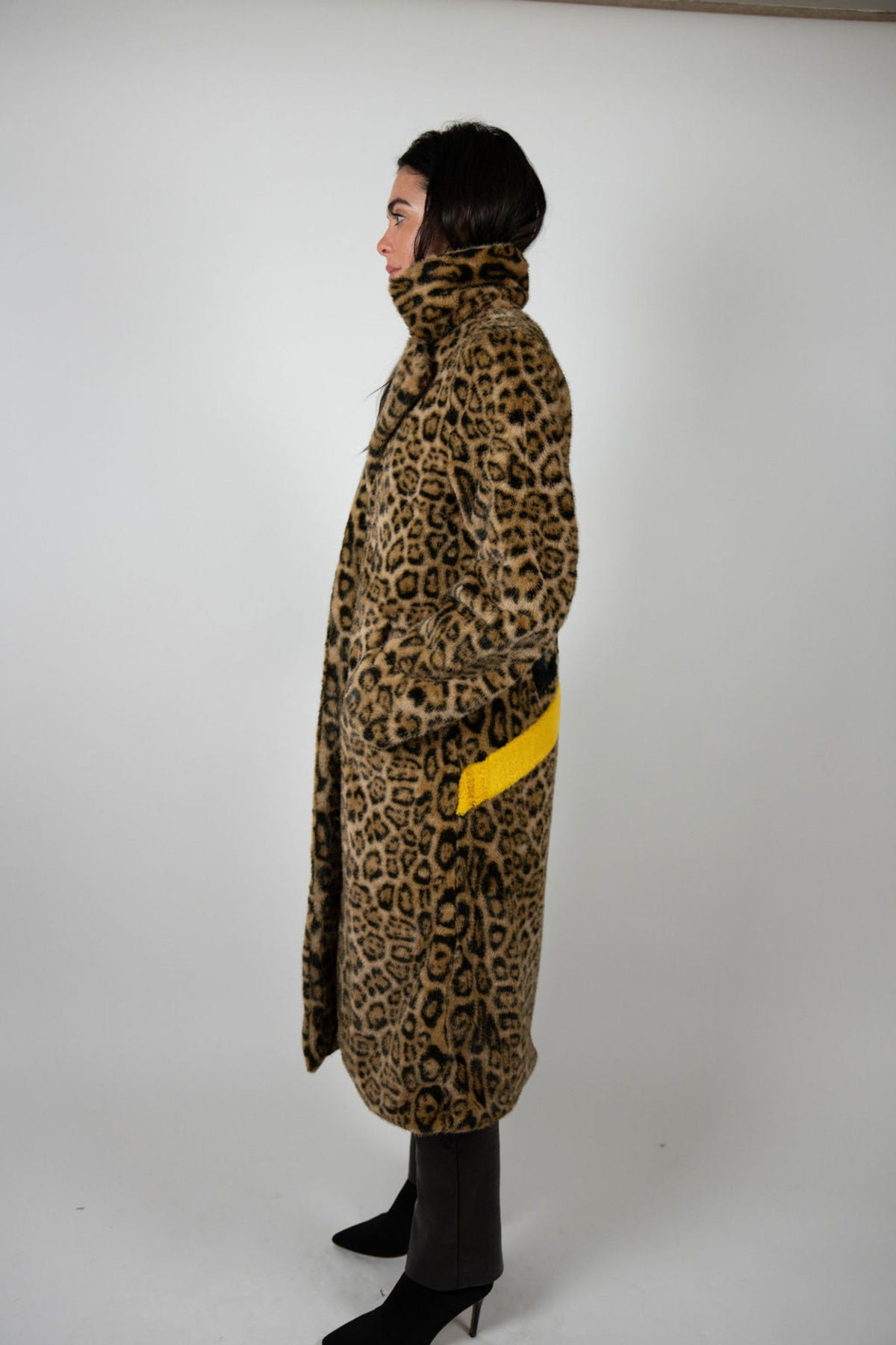 Meet the boldest iteration of our best-selling silhouette: the Mr Greys Leopard Love Coat. This reimagined version of the iconic “LOVE” design steps into the wild with all-over leopard faux fur, contrasted by a velvet-soft black “LOVE” motif sliced through with our signature yellow lightning bolt. Soft, plush, and full of attitude, it’s crafted in a longline, structured silhouette with a stand-up collar—bringing instant drama, warmth, and personality to any look. From denim days to evening plans, this statement piece delivers luxe with a wink.
