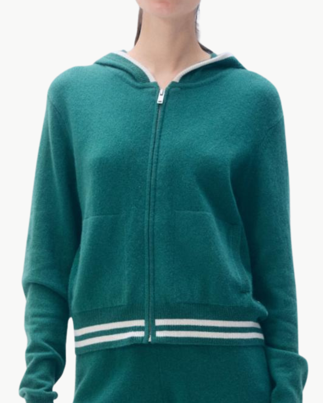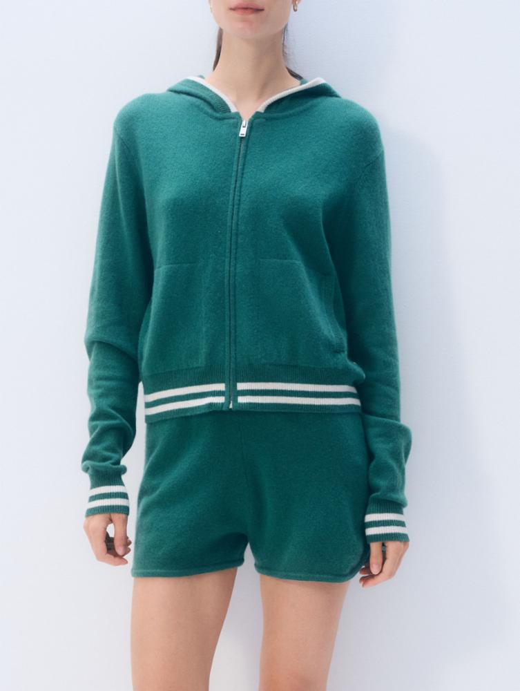 The Cashmere Varsity Hoodie brings a sport-inspired edge to elevated knitwear. Crafted in lush cashmere, this zip-up hoodie features a clean varsity feel with contrast striping and a polished silhouette that feels just as good layered as it does worn solo.