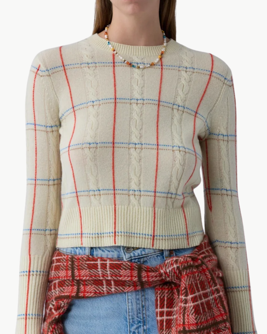 The Shrunken Check Crew delivers a fresh, graphic update to a signature silhouette. Crafted in pure cashmere with a modern check jacquard, this sweater keeps the beloved slim fit and lightweight feel of the iconic Shrunken Crew while adding visual depth through intarsia and cable detailing. Polished yet effortless, it’s a refined staple designed for everyday wear with elevated texture.