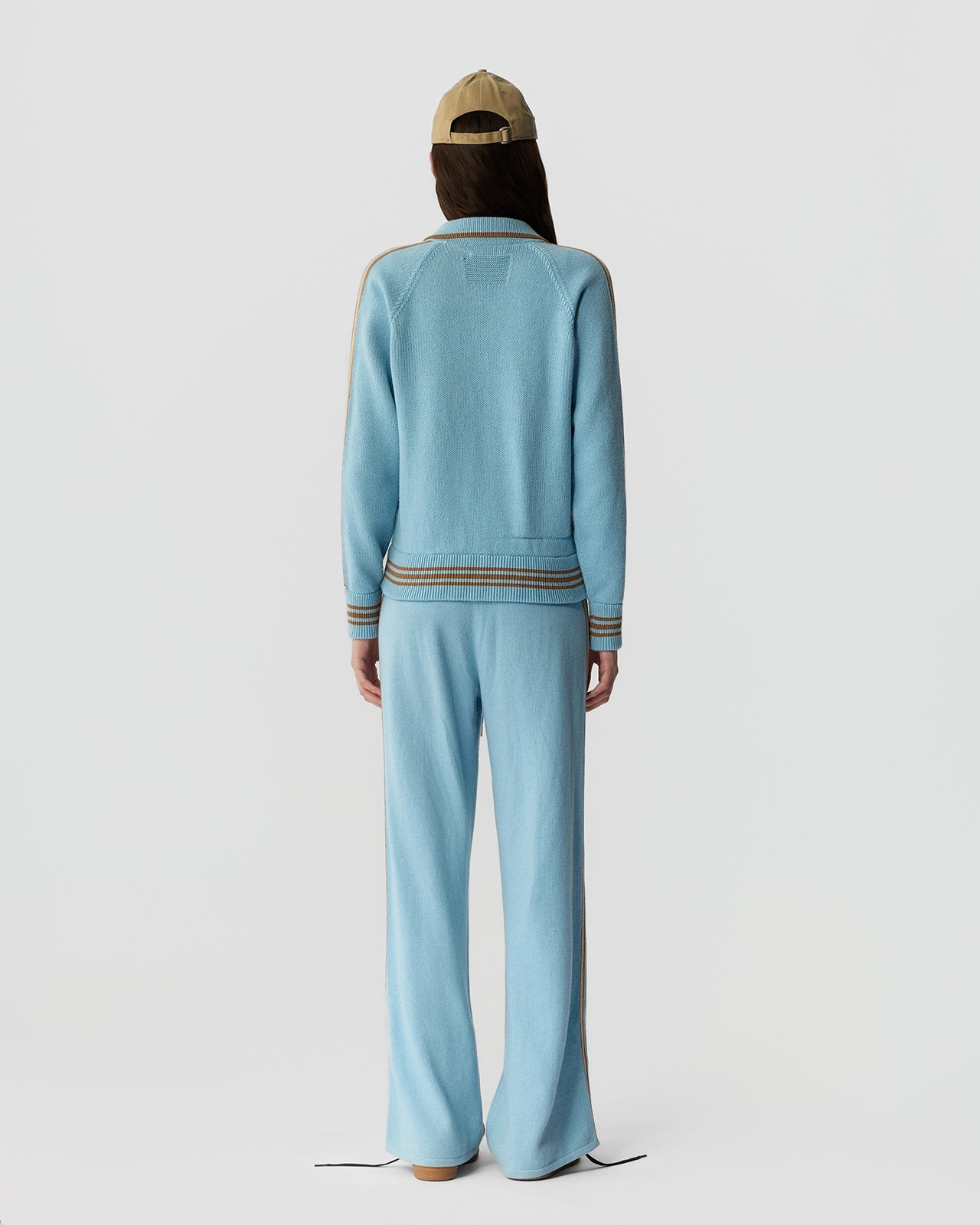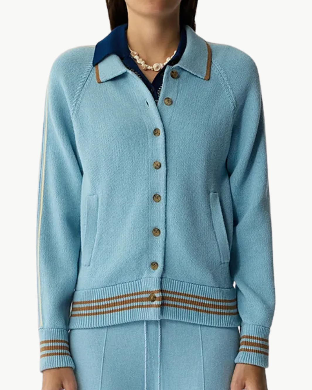 The Varsity Jacket brings a sport-inspired edge to everyday knitwear. Crafted from a soft cotton–cashmere blend, this mid-weight jacket features classic varsity details including athletic stripe accents and ribbed trim. Designed with a relaxed raglan sleeve silhouette and front button closure, it offers an easy balance of comfort and polished casual style.