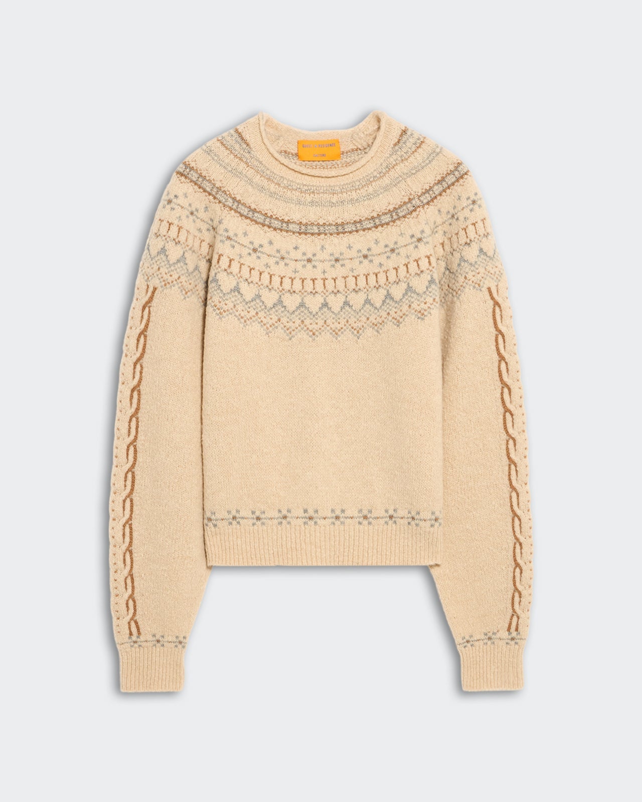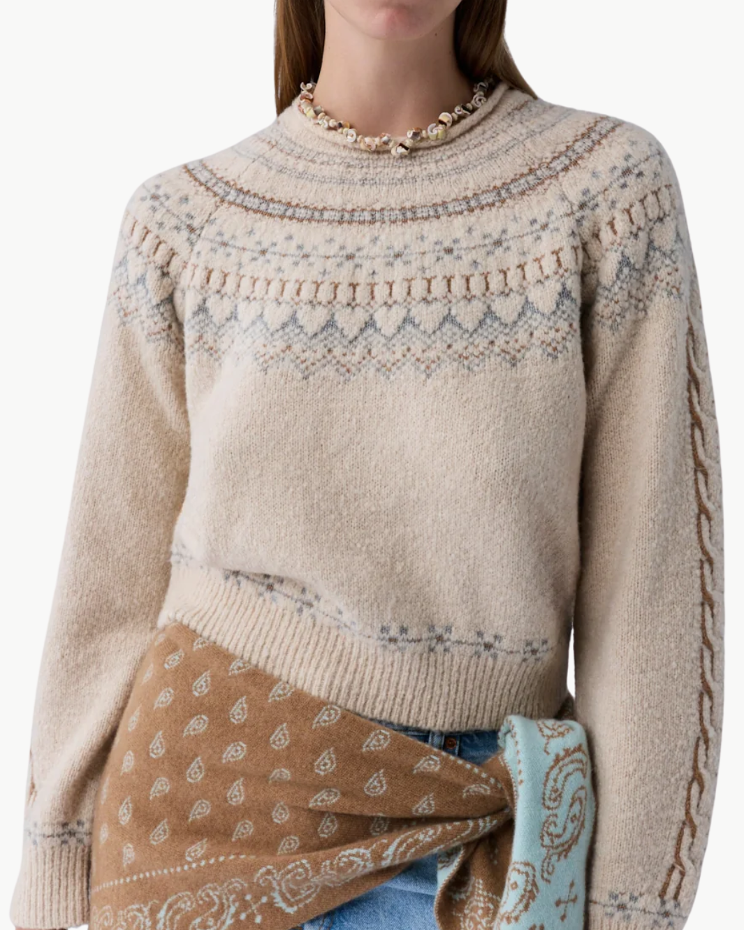 The Cloud Chalet Crew reimagines vintage alpine knits through a modern lens. Crafted from a luxurious wool–cashmere blend and ultra-soft Cloud yarn, this heavy-weight Fair Isle sweater delivers warmth with a cozy, elevated feel. A slightly boxy silhouette and curved raglan yoke give it relaxed structure, while heritage-inspired patternwork adds timeless charm.