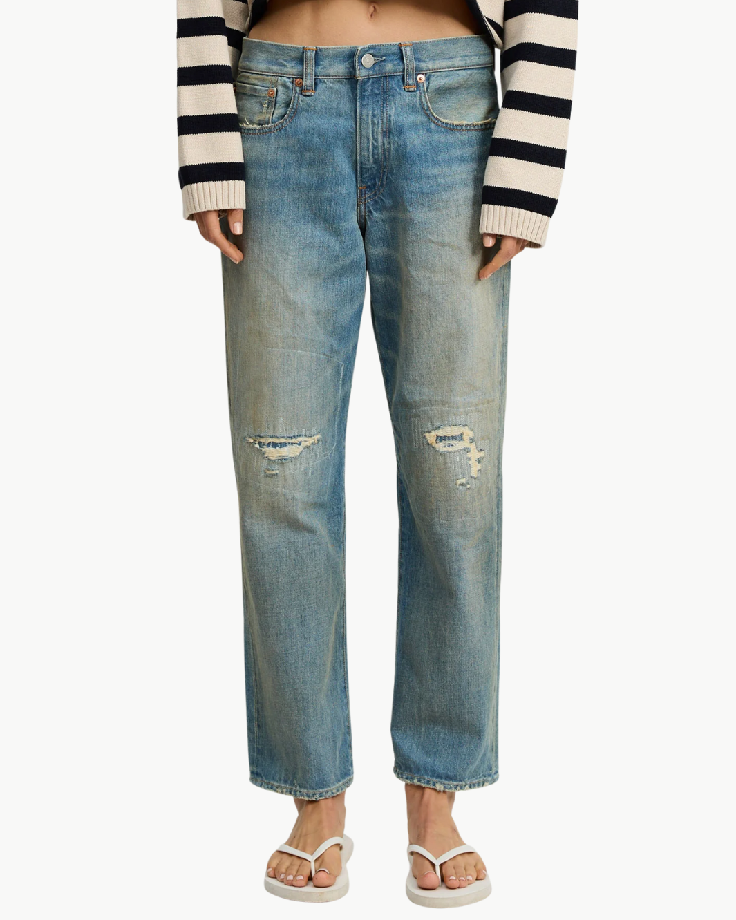 The Lindsay Slim Boyfriend Jean is designed with a mid-rise waist and a relaxed fit through the hip that tapers into a slim, straight leg. Subtle distressing adds a lived-in feel, while classic five-pocket construction keeps the look timeless and versatile. Easy, flattering, and endlessly wearable, this is a modern take on the boyfriend silhouette.