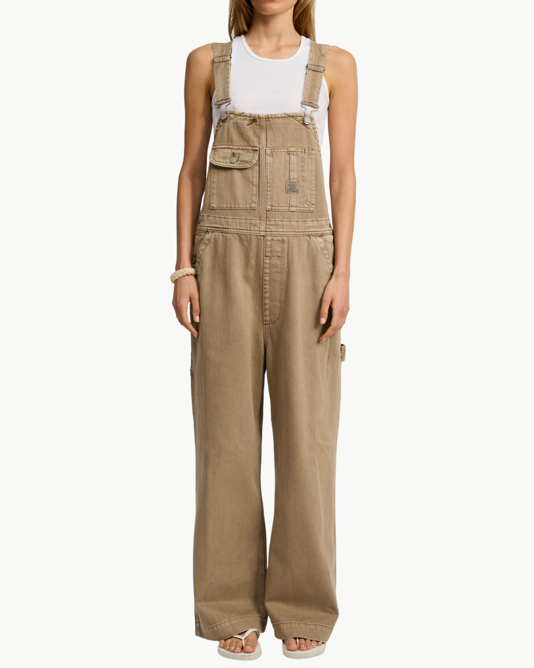 The Slouch Bib Overall is designed with a relaxed, easygoing silhouette that channels classic workwear with a modern feel. Featuring adjustable shoulder straps, chest patch pockets, and side button closures, it offers both function and comfort. A full-length wide leg is finished with utility detailing and rear patch pockets, creating a laid-back yet intentional look that feels effortless and lived-in.