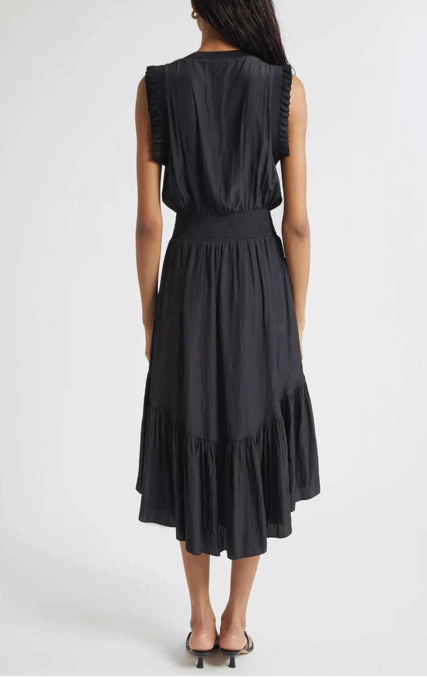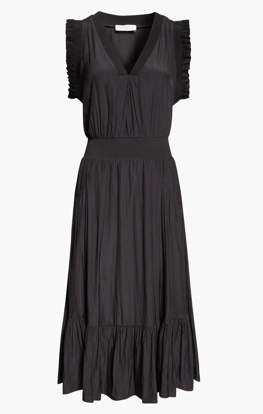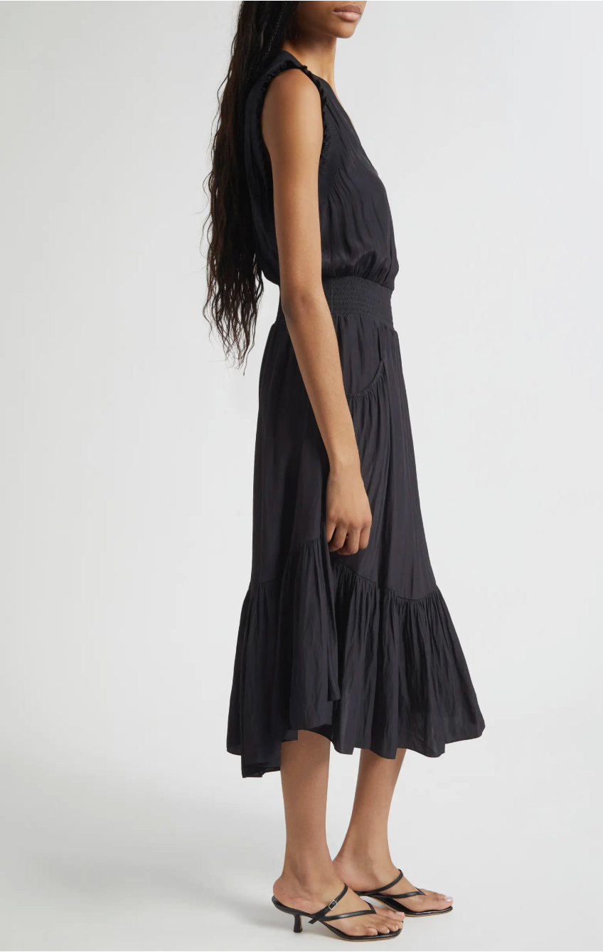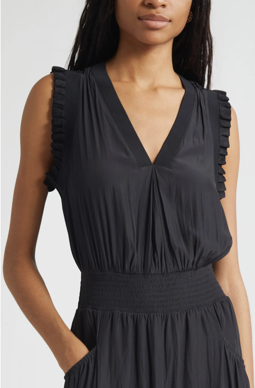 COCO SMOCKED SLEEVELESS DRESS IN BLACK