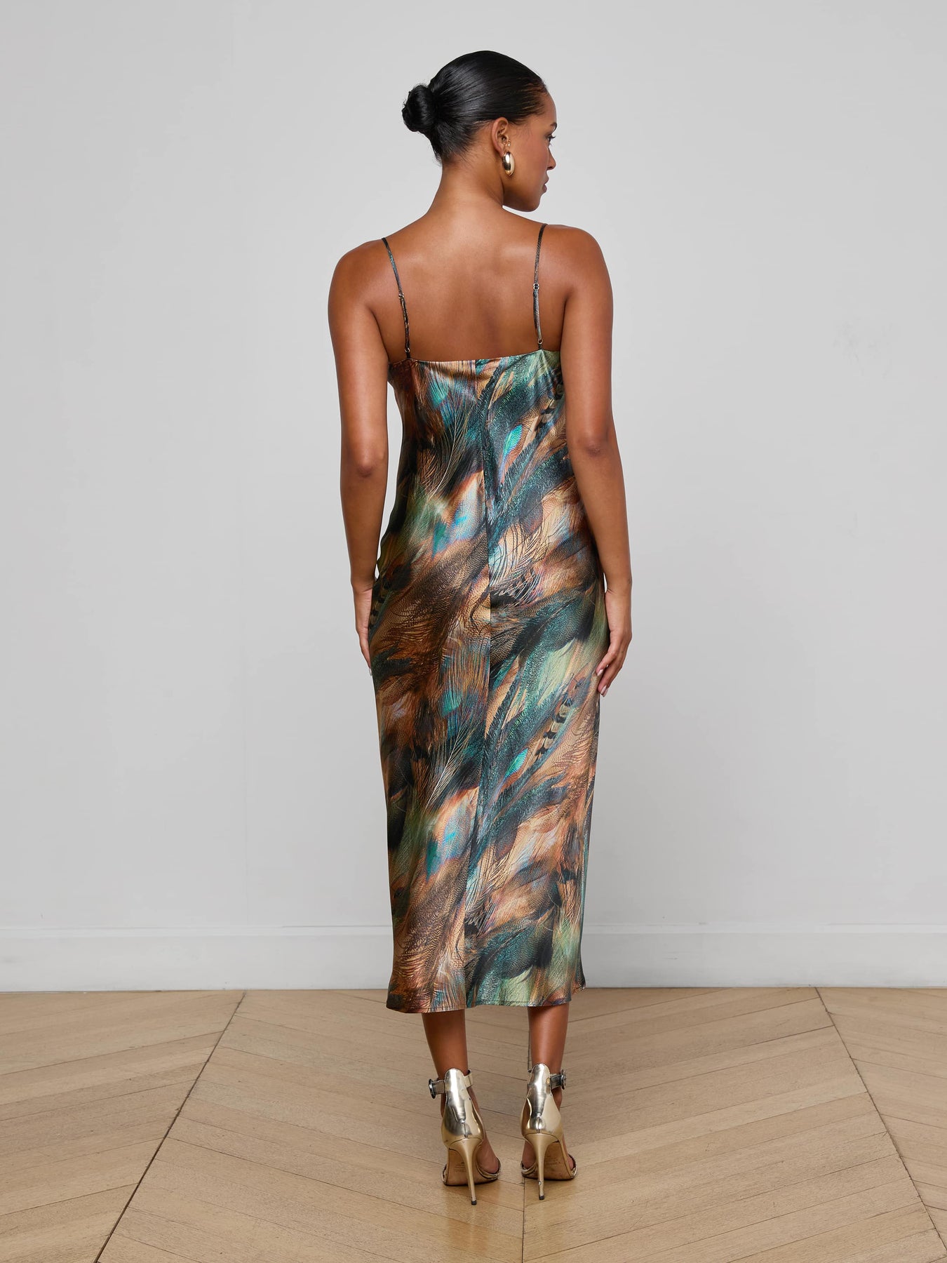 SERIDIE SLIP DRESS IN TEAL MULTI MIX FEATHER