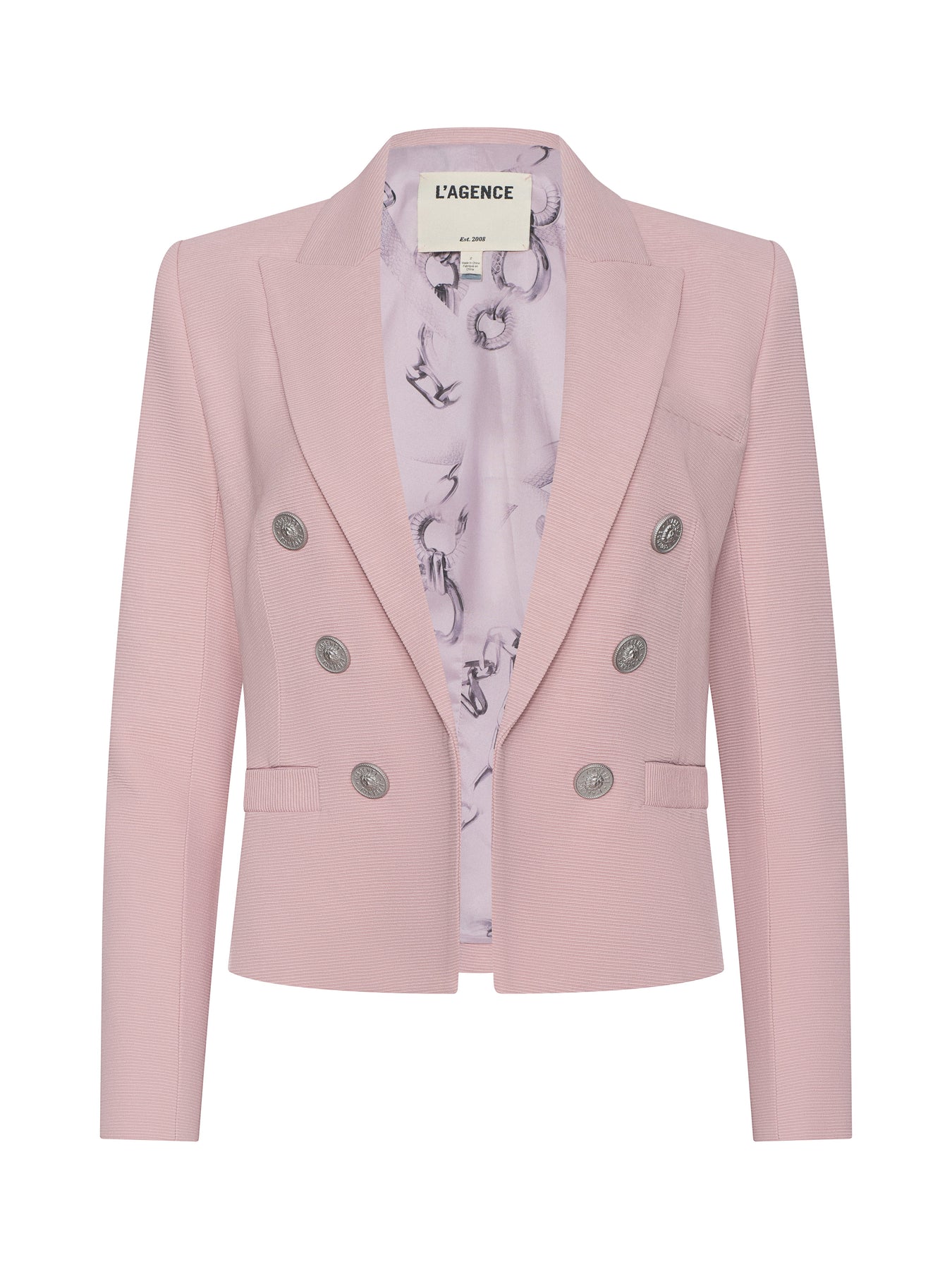 A modern classic with effortless edge, the bestselling open-front Brooke blazer returns in pale pink, cut in a flattering tapered silhouette that feels sharp yet wearable. Crafted from lightweight ribbed ottoman fabric with a cool, slick hand, this double-breasted style delivers structure without stiffness. Designed to be worn open, it’s the kind of blazer that instantly elevates denim while remaining polished enough for day-to-night styling.