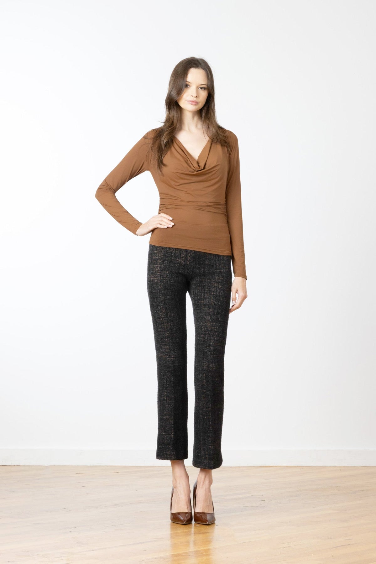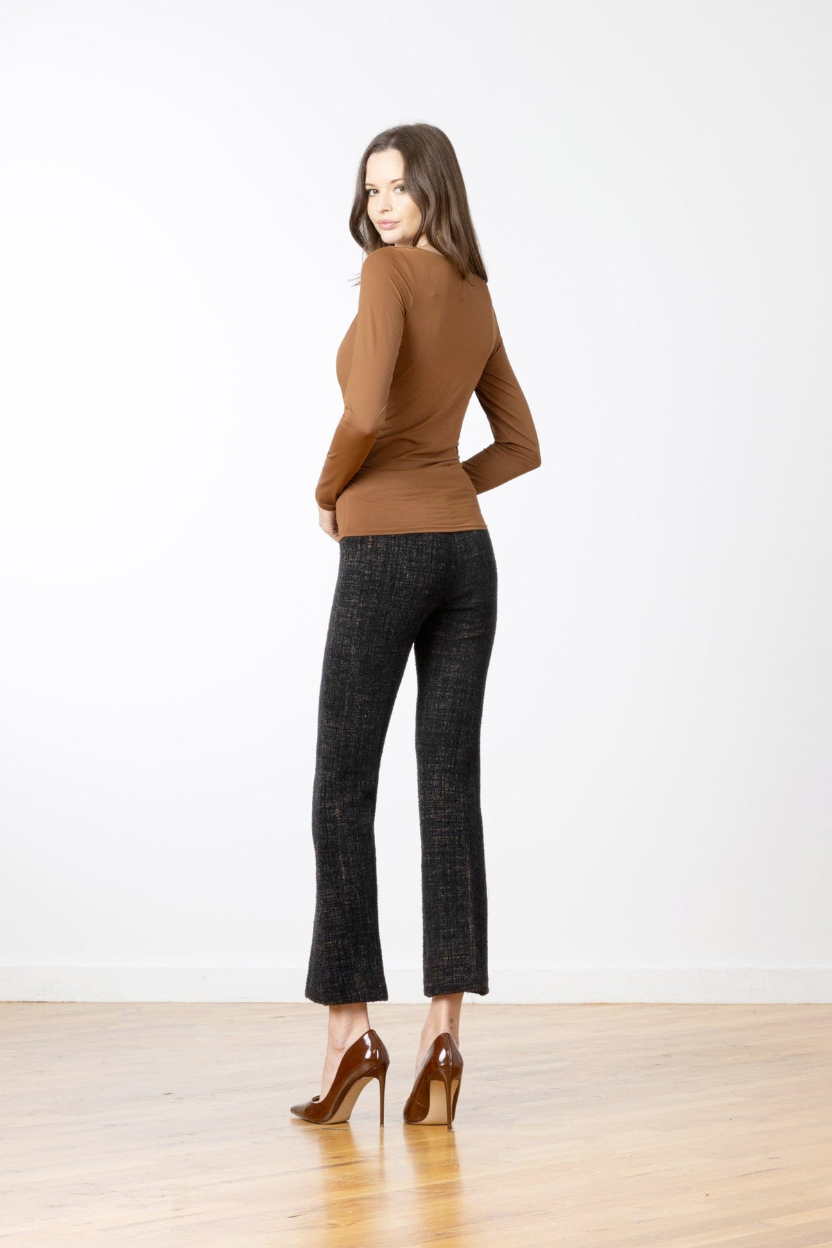 The Leo pant from Avenue Montaigne is a cropped flare silhouette designed for effortless comfort and versatility. Its pull-on elasticated waistband and stretch construction make it an easy choice for everyday wear, pairing seamlessly with heels, sneakers, loafers, or boots.