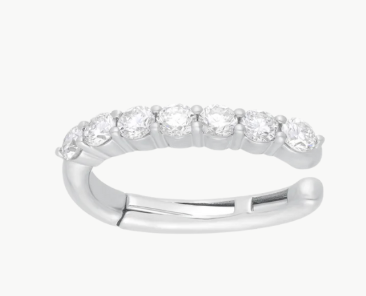 The Jumbo Prong Set Diamond Ear Cuff delivers statement sparkle with effortless ease—no piercing required. Designed to sit comfortably at the mid-ear, this sculptural cuff features five brilliant prong-set diamonds that catch the light from every angle. A discreet hinge ensures a secure fit, making it the perfect finishing touch for a modern ear stack or a standout solo moment.
