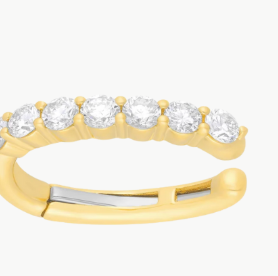 The Jumbo Prong Set Diamond Ear Cuff delivers statement sparkle with effortless ease—no piercing required. Designed to sit comfortably at the mid-ear, this sculptural cuff features five brilliant prong-set diamonds that catch the light from every angle. A discreet hinge ensures a secure fit, making it the perfect finishing touch for a modern ear stack or a standout solo moment.