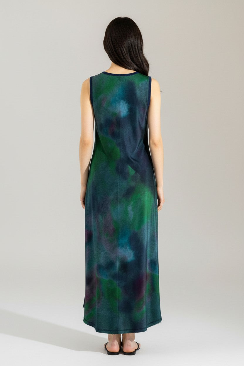 This silk bias-cut dress is designed with a fluid V-neck silhouette that skims the body and moves beautifully with each step. The sleeveless shape keeps the look minimal and refined, while the gently flared hem enhances the natural drape. Effortless and elevated, it offers a sleek, modern take on an everyday midi dress.