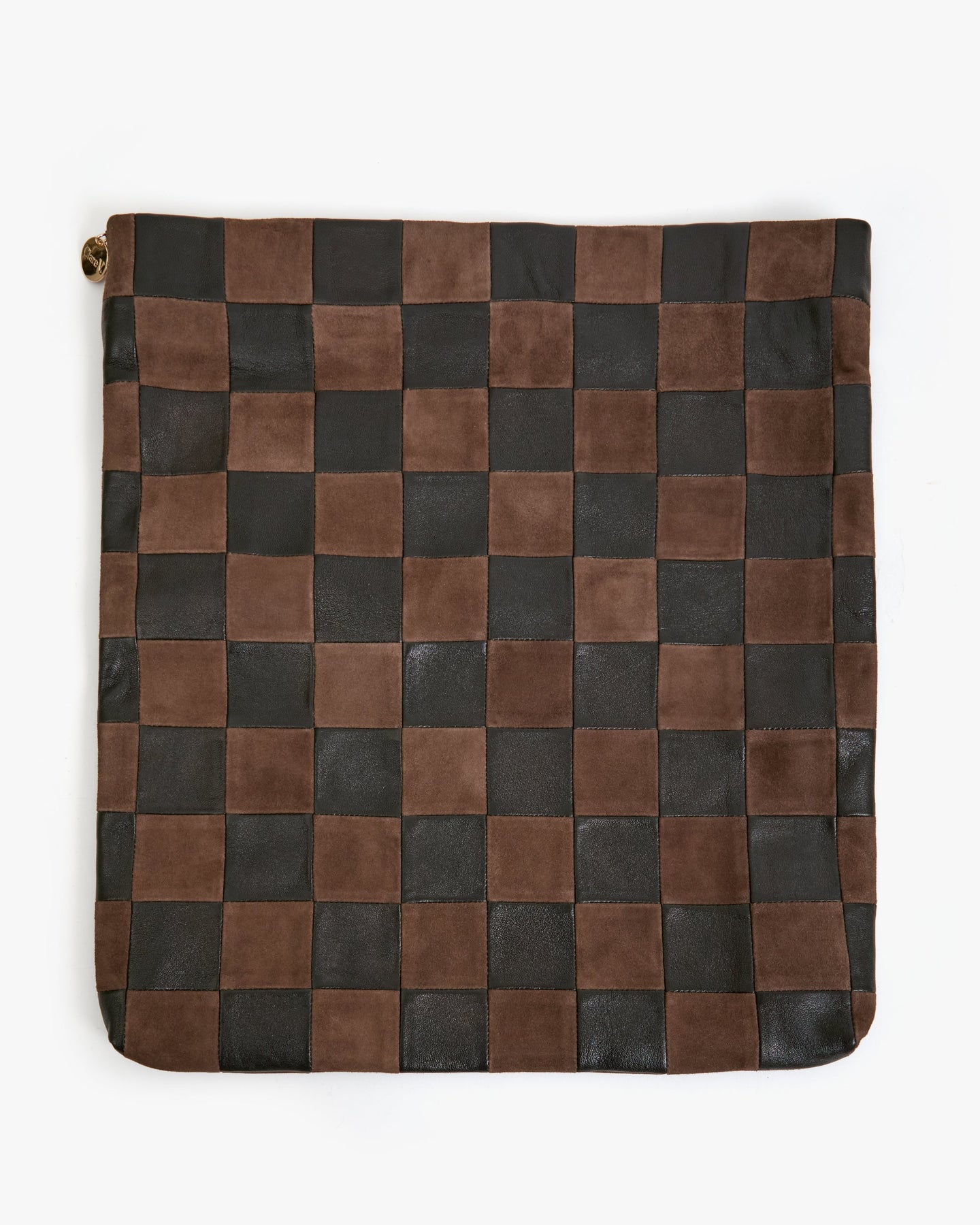 CARRYALL CLUTCH NAPPA & SUEDE OVERSIZED CHECKER W/ TABS IN BLACK & CHOCOLATE