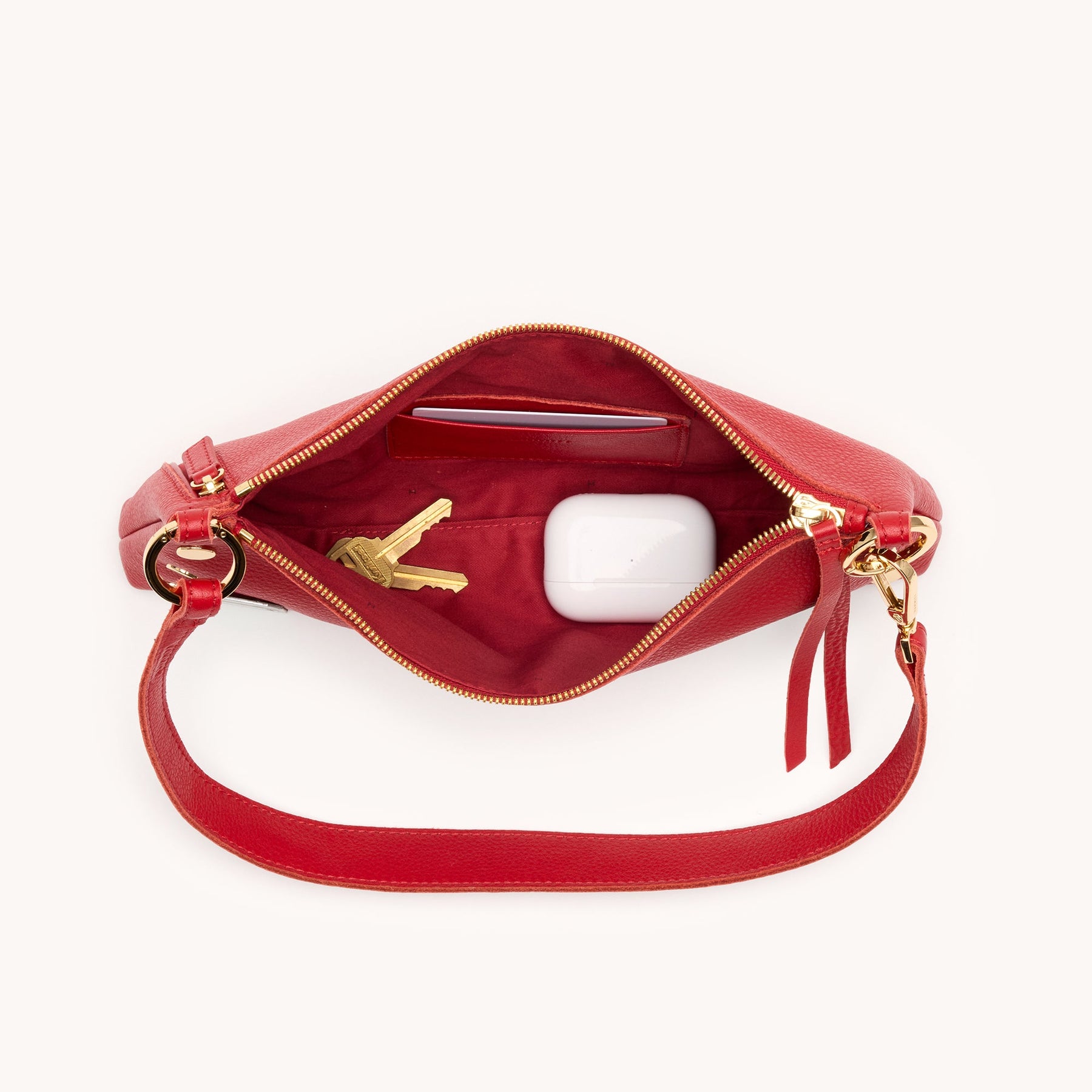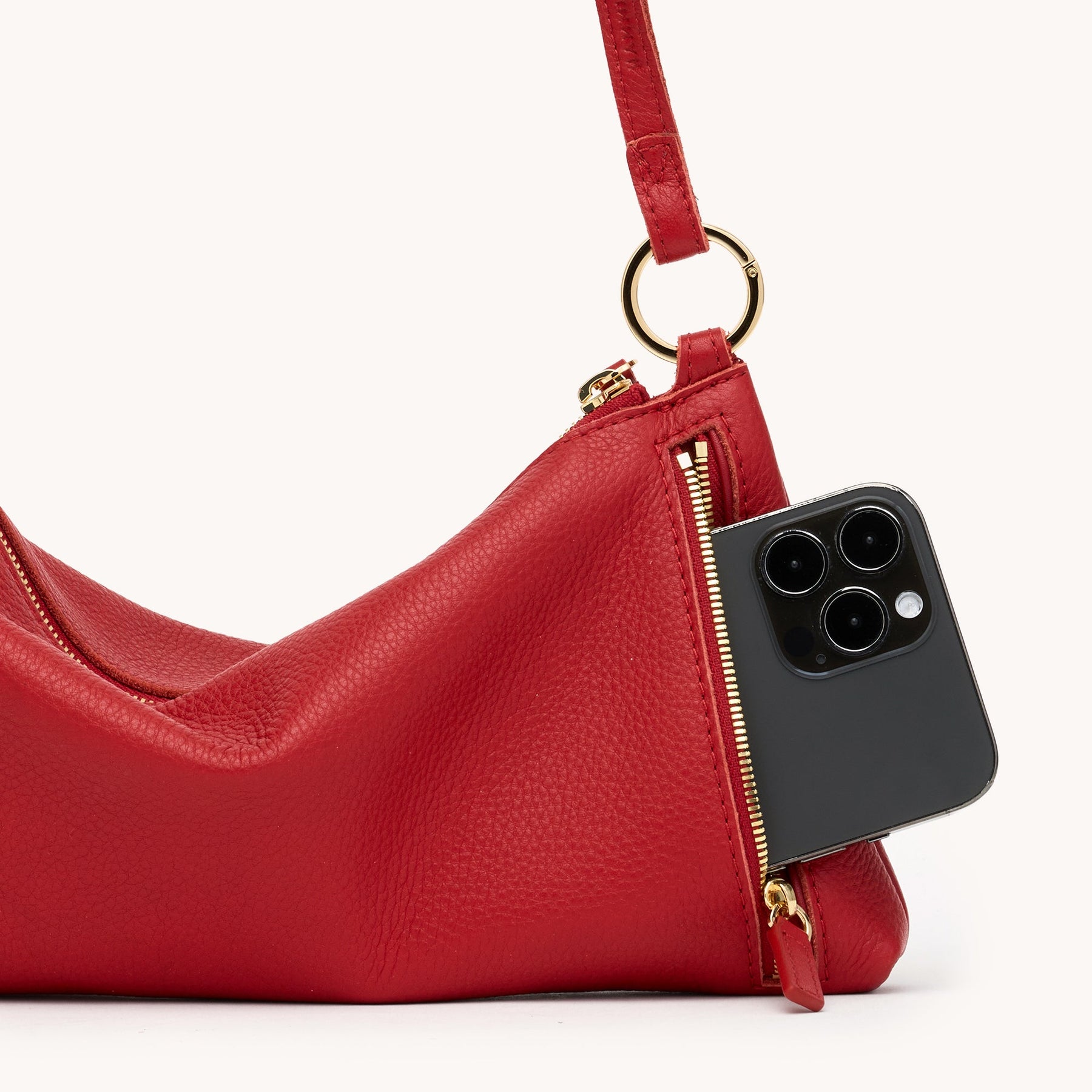 Meet the Kyle Small—a fresh, of-the-moment bag designed for nights out and nonstop plans. With its slouchy, current silhouette and versatile strap options, this compact style moves effortlessly from wristlet to shoulder bag to hands-free crossbody. Crafted in bold, fiery true red pebble leather and finished with shiny gold hardware, Kyle brings statement energy with smart functionality.