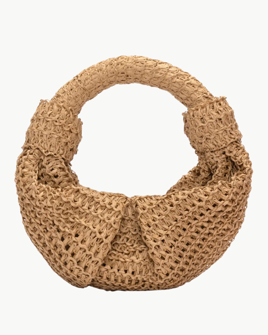 The Raffia Lopsy Bag is a sculptural handbag designed with artisanal texture and effortless everyday appeal. Crafted from woven paper straw, it features custom knot detailing that adds dimension and visual interest, balanced by a clean magnetic closure. Lightweight with a softly structured silhouette, it’s an easy statement piece for warm-weather styling.