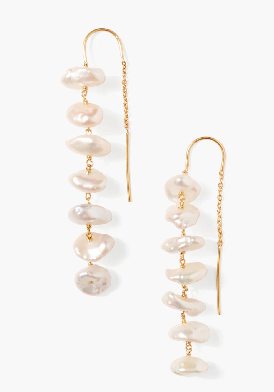 An elegant reinterpretation of a timeless classic, the Anini Thread Thru Earrings bring a modern, effortless feel to pearl jewelry. Natural white keshi pearls appear to float delicately along a sleek threader silhouette, creating subtle movement and refined shine with every turn. Designed to be worn solo or paired with layered ear looks, these earrings strike the perfect balance between minimalism and sophistication.