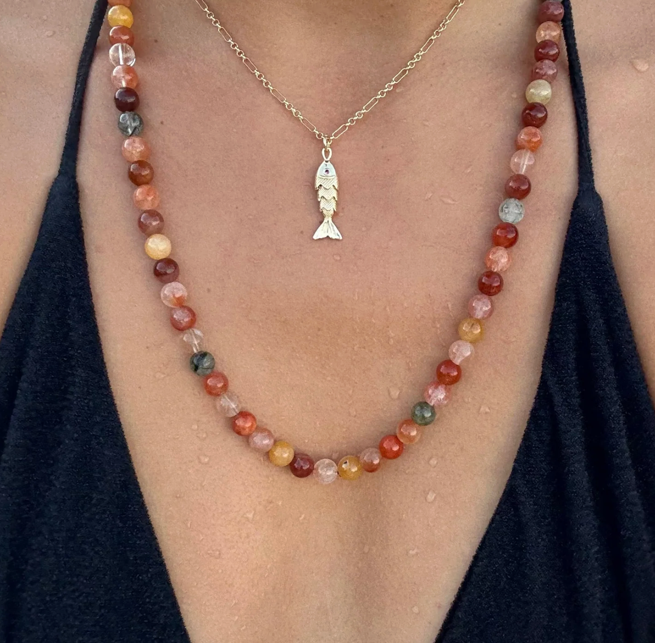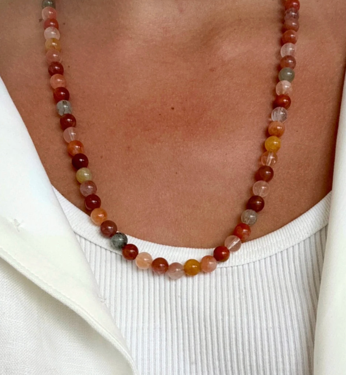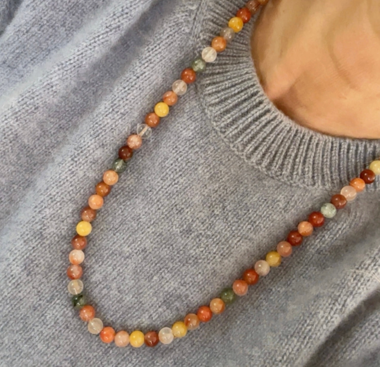 Grounded yet expressive, this beaded necklace brings together rich, natural tones in a quietly striking way. Designed with smooth round glass beads in a dark, earthy palette, each piece has subtle variation that gives it an organic, one-of-a-kind feel. The longer length makes it effortless to wear on its own or layered with your favorite chains for an easy, collected look that works year-round.