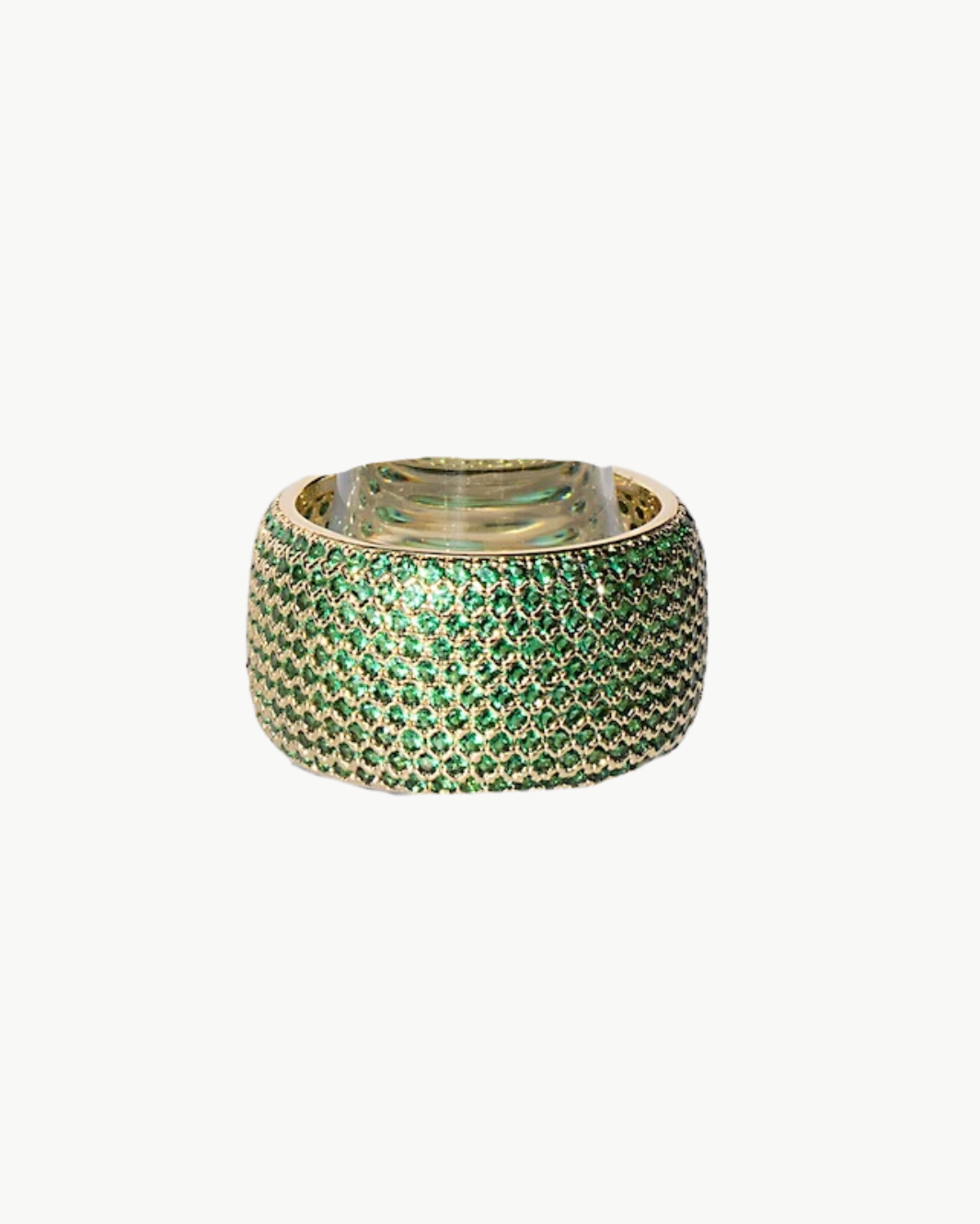 Bold, confident, and unapologetically luxe, the Billionaire Ring in Emerald is designed to make an impact. This cigar-style band is crafted in rich 14K gold vermeil and set with striking emerald-cut cubic zirconia that catch the light with every movement. The substantial silhouette delivers statement energy while maintaining a refined, polished edge—perfect for elevating everyday looks or adding drama to evening styling. Designed to be worn and cherished, this modern power piece reflects Native Gem’s commitment to bridging the gap between fine jewelry and everyday luxury, using hypoallergenic, lead-free, and cadmium-free metals for lasting quality and effortless wear.
