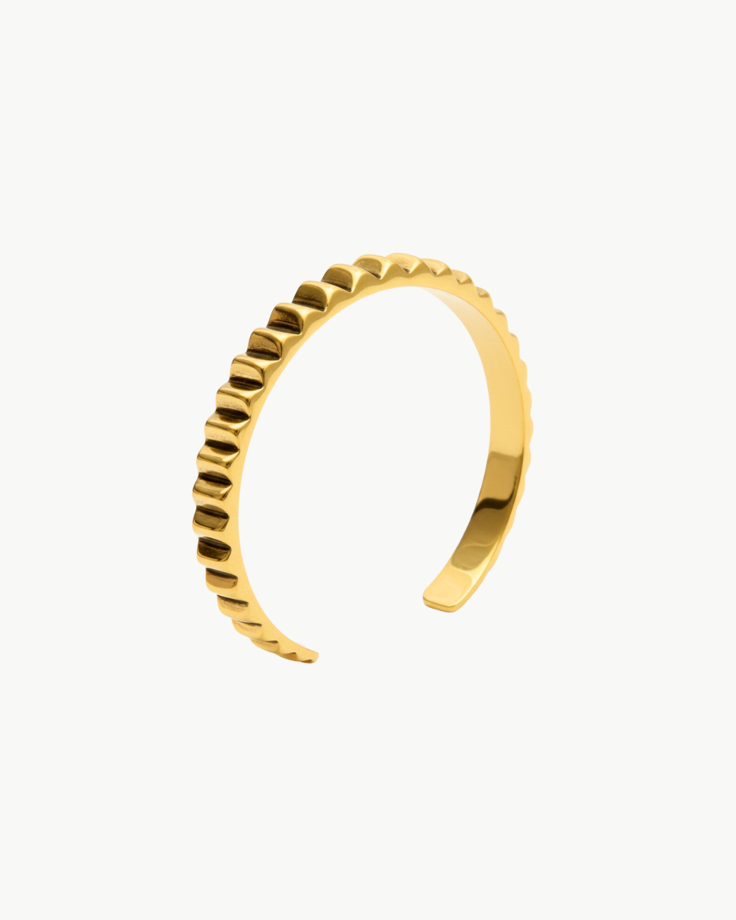 The Leny Man Bracelet is a sculptural bangle designed with clean lines and a bold, modern presence. Crafted in solid brass, its smooth, contoured shape sits comfortably on the wrist while delivering understated impact. An engraved logo detail on the interior adds a subtle signature finish, making it an effortless statement piece for everyday wear.