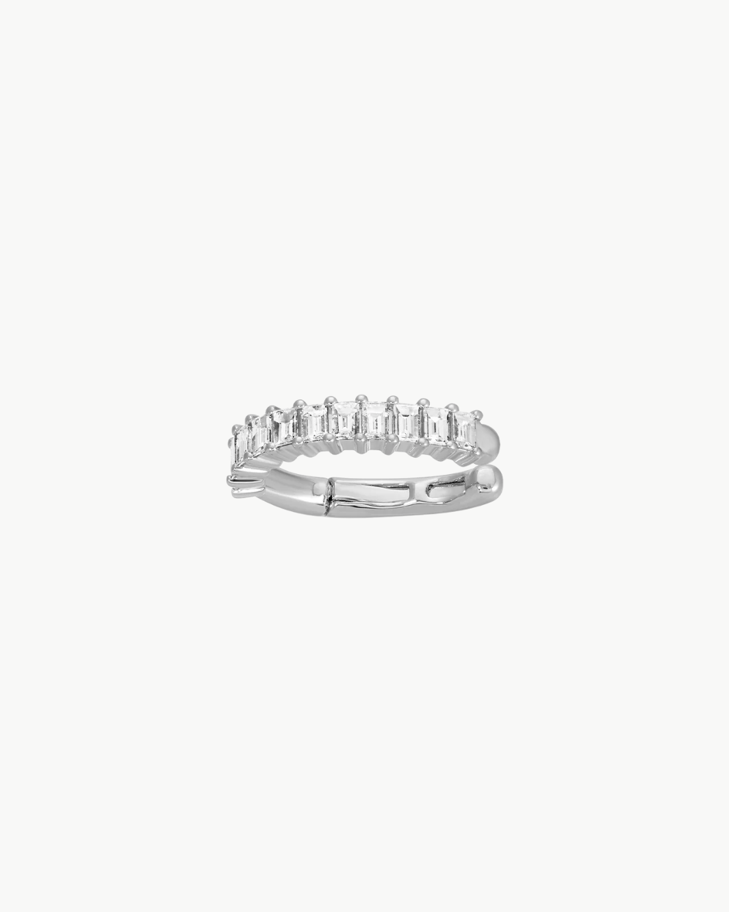 The Prong Set Diamond Baguette Ear Cuff sparkles with .34 carats of diamond. Designed with a hinge for comfortable wear mid-ear, this cuff requires no piercing—just a love of decorated ears.