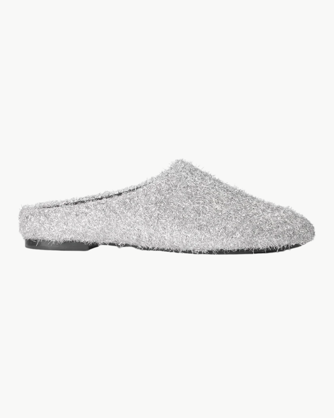 The Tinsel Riad Slipper adds a playful, elevated shimmer to an easy slip-on silhouette. Designed for effortless wear, this style features a sparkling tinsel finish paired with a smooth leather sole—perfect for dressing up relaxed looks or adding a touch of shine to everyday styling.