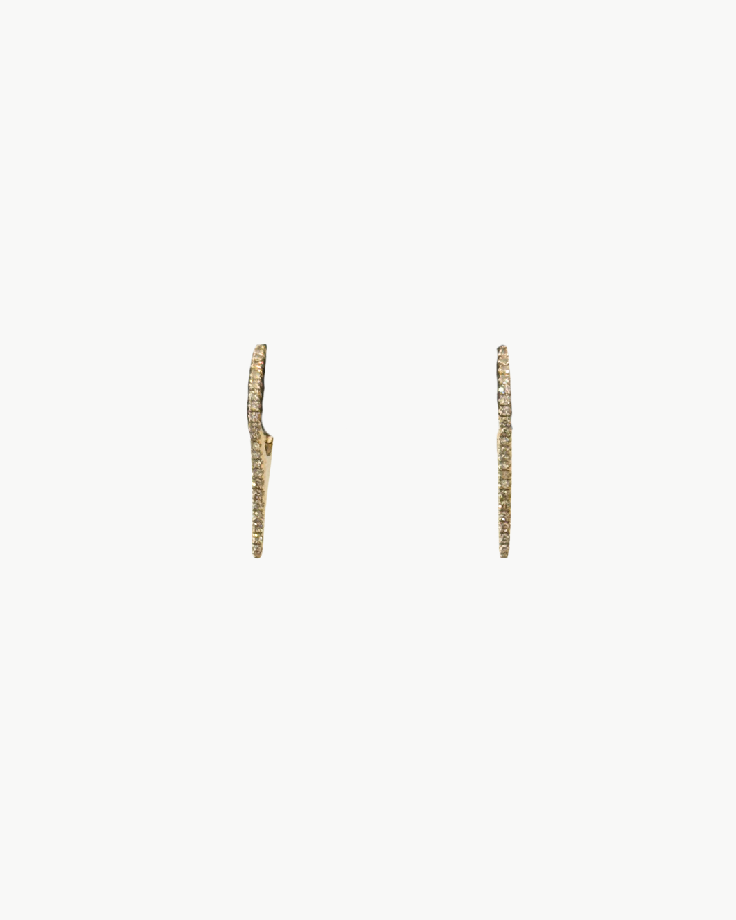 A sculptural pointy huggie earring crafted in polished 14k gold, designed with an elongated, tapered silhouette that creates a striking sense of movement. Subtle diamond detailing traces the outer edge, adding refined sparkle while maintaining a sleek, modern profile. The pointed drop contrasts beautifully with the rounded huggie base, giving this piece a bold yet elegant fine-jewelry feel.
