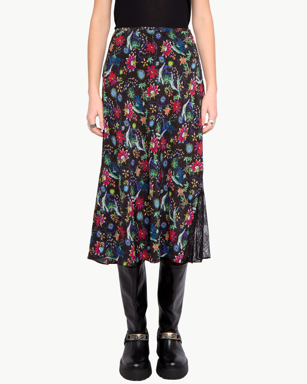 The Jayla Skirt is a mid-length, lingerie-inspired silhouette designed with fluid movement and delicate detail. Cut with a soft, draped shape, it features lace accents that add subtle femininity while maintaining an effortless, modern feel. Easy to dress up or down, it brings refined ease to everyday styling.