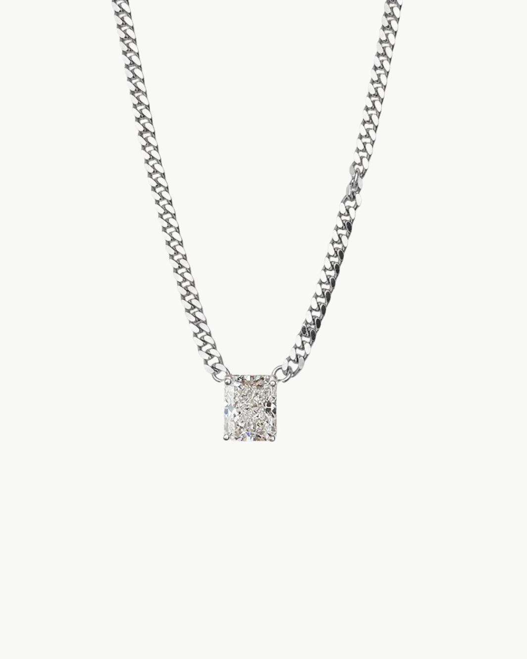 A stunning crushed-ice solitaire sits gracefully on a delicate Cuban chain. Wear it solo for understated elegance or layer it with other pieces for added dimension.