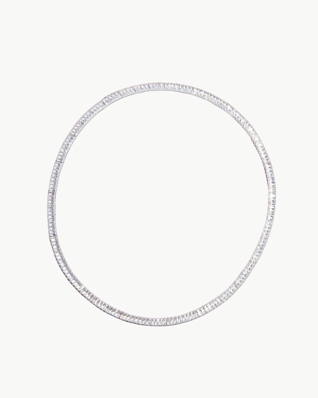 A dazzling statement piece, the Shelley Necklace is crafted with 220 hand-set mini baguette crystals that create a stunning, light-catching collar effect. Sleek, modern, and impossibly glamorous, it brings refined sparkle to any look—perfect for evening dressing or adding a touch of shine to everyday style.