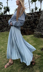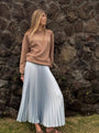 The Classic Satin Midi Skirt is designed with sunburst pleating that flows beautifully with every step. Finished with an easy elasticated waistband, this versatile piece offers both comfort and sophistication—perfect for dressing up or down.