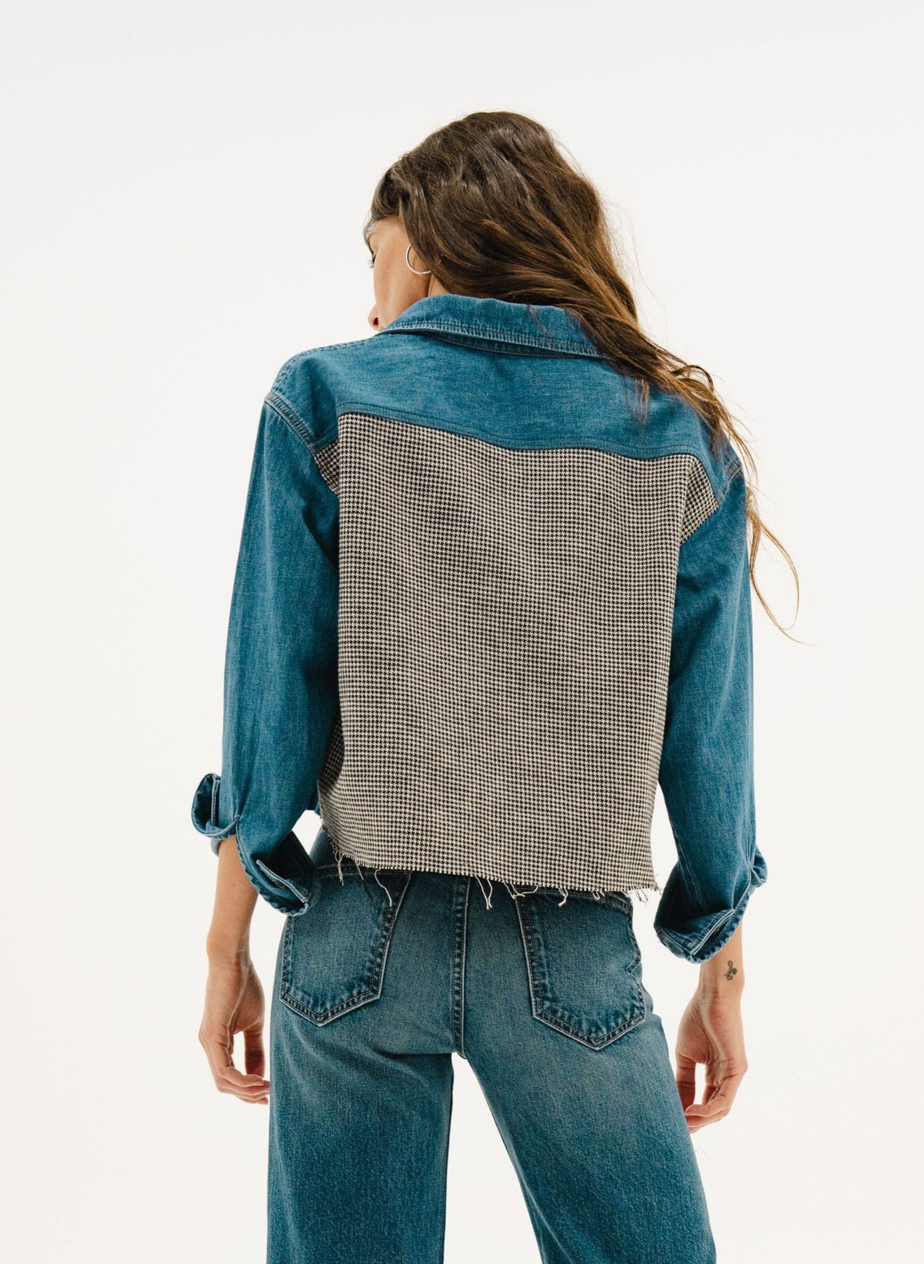 The Crosby Combo is a modern reinterpretation of the classic button-down, blending relaxed structure with subtle contrast. Crafted from soft Japanese cotton shirting, it features an oversized fit and front patch pockets for an effortlessly cool silhouette. A contrasting back panel adds unexpected texture and visual depth, giving this timeless style a fresh, contemporary edge. Perfect for layering or wearing solo, it’s a versatile staple that transitions easily from day to night.