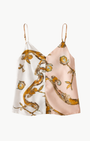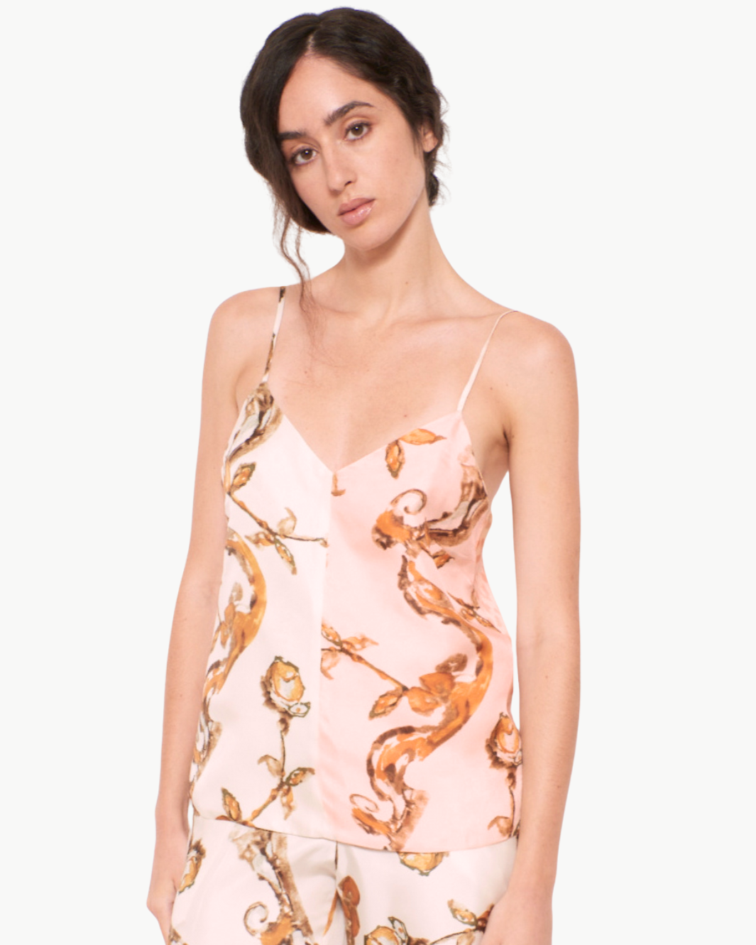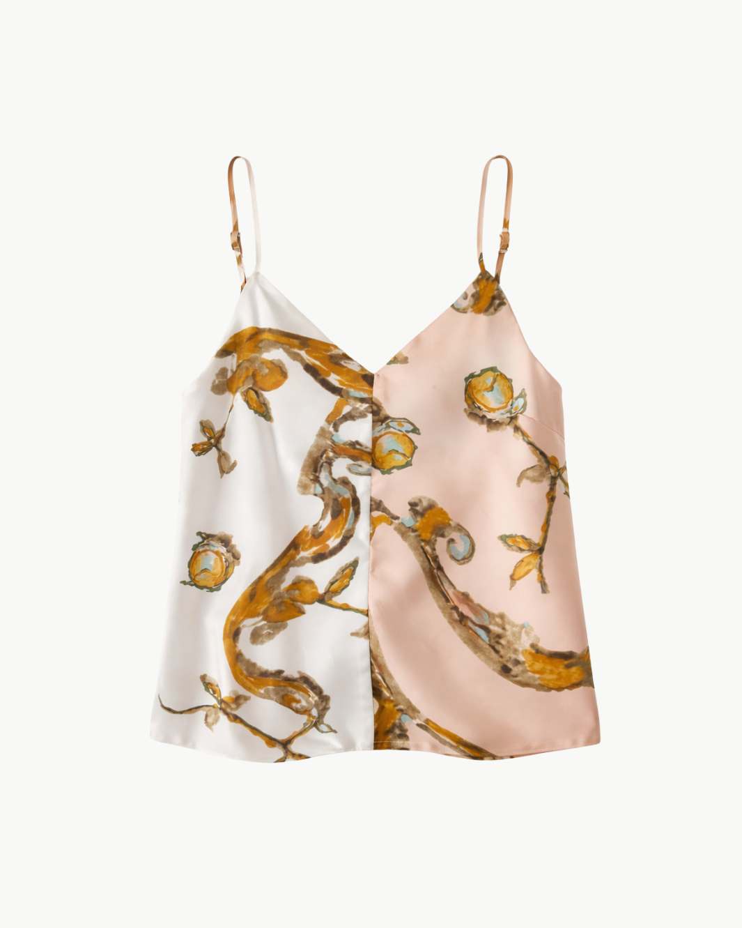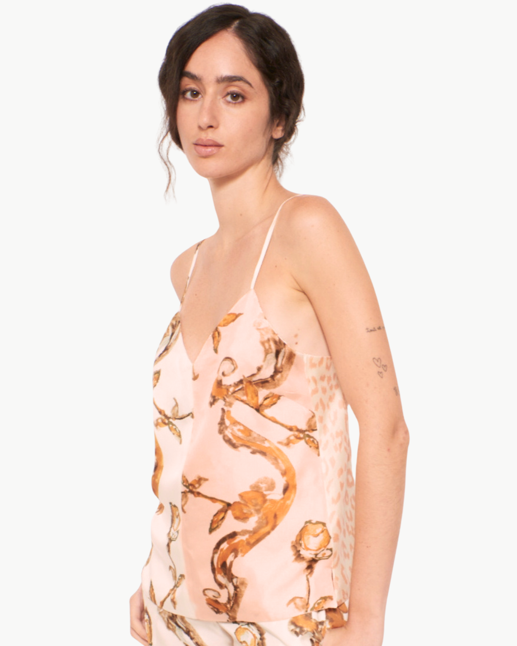 Delicate and artfully designed, the Fragola silk camisole from La Prestic Ouiston brings a refined, feminine touch to any wardrobe. Crafted from luxurious silk, this sleeveless silhouette features a flattering V-neckline and adjustable spaghetti straps for a personalized fit. The soft, fluid drape and distinctive multi-tone print make it an effortless piece to dress up for evenings or style casually with denim during the day.