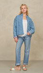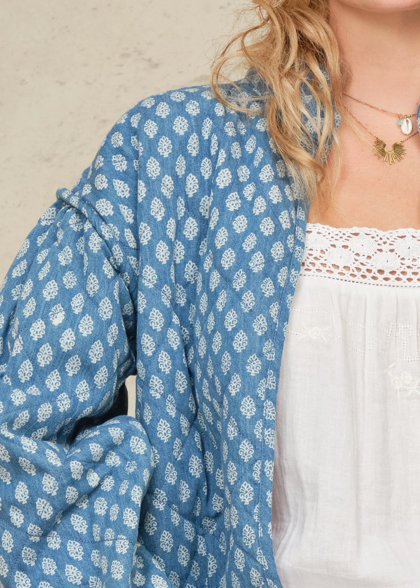 Charming and easy to layer, the Jenna Jacket blends classic denim with delicate floral detailing for a fresh, feminine feel. Crafted from washed denim with a tiny floral blockprint motif, this lightly quilted style offers warmth without heaviness. The contrast floral cotton lining and relaxed, oversized silhouette make it a cozy yet polished layer for transitional days.