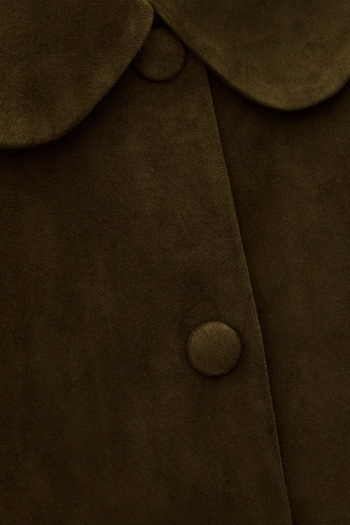 A timeless suede jacket from ba&sh, crafted with luxurious texture and impeccable detail. The structured yet soft silhouette offers a polished finish, perfect for dressing up any outfit. Thoughtful gathers at the back yoke add subtle volume and movement, while classic snap closures and a sleek front pocket complete the look.