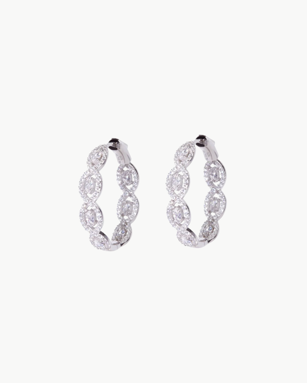 Discover understated elegance with the Mini Sylvie Hoop, featuring a graceful oval silhouette enhanced by a shimmering pave stone infinity design.