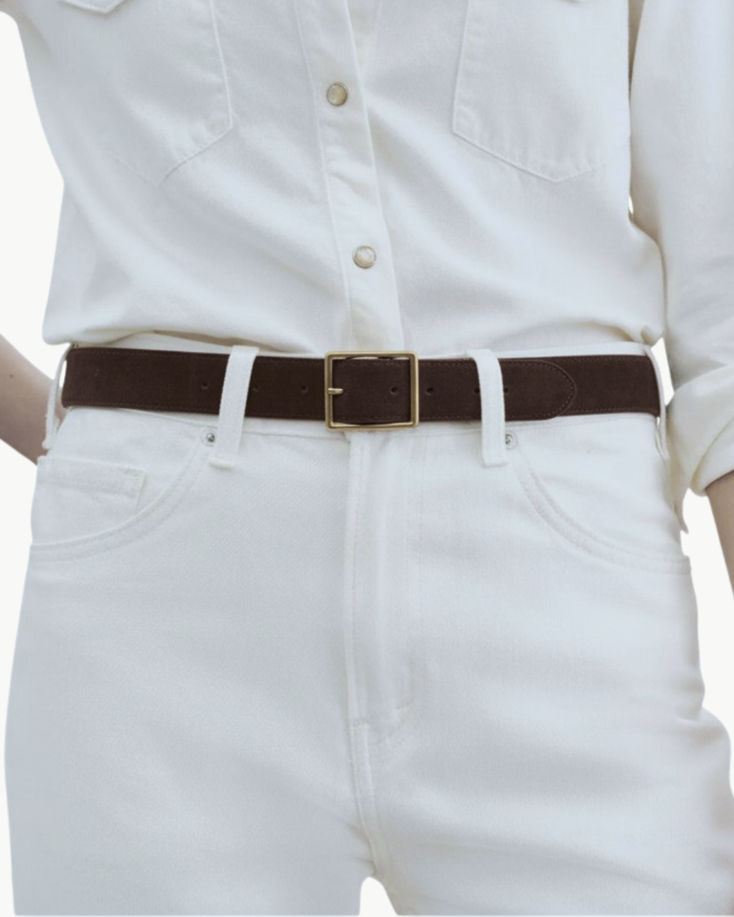 A refined wardrobe staple, the Gabriele Belt is crafted from rich Italian suede with a smooth leather lining and a bombe finish that gives it subtle structure. The custom square buckle adds a modern edge, complete with an engraved Nili Lotan logo on the back. Timeless, minimal, and luxe—this belt elevates denim, tailoring, and everything in between.