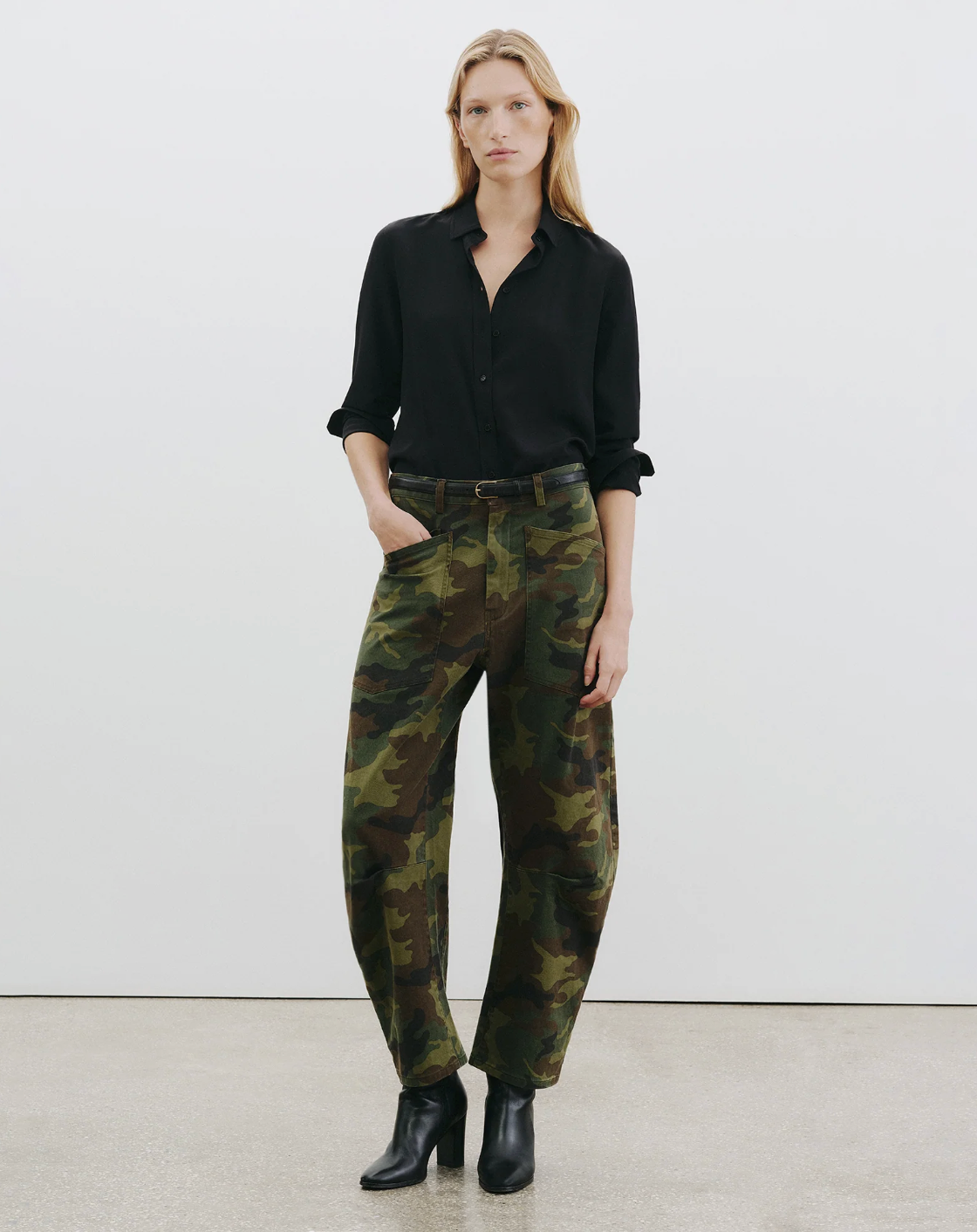 The Shon Pant is a modern take on utilitarian tailoring, designed with a relaxed barrel leg and a distinctly curved silhouette. Thoughtful construction details—like knee seam articulation and a gusseted inseam—add structure and ease, while patch pockets and belt loops ground the look in everyday functionality. Finished with a clean zip fly and concealed closures, it balances craftsmanship with effortless wearability.