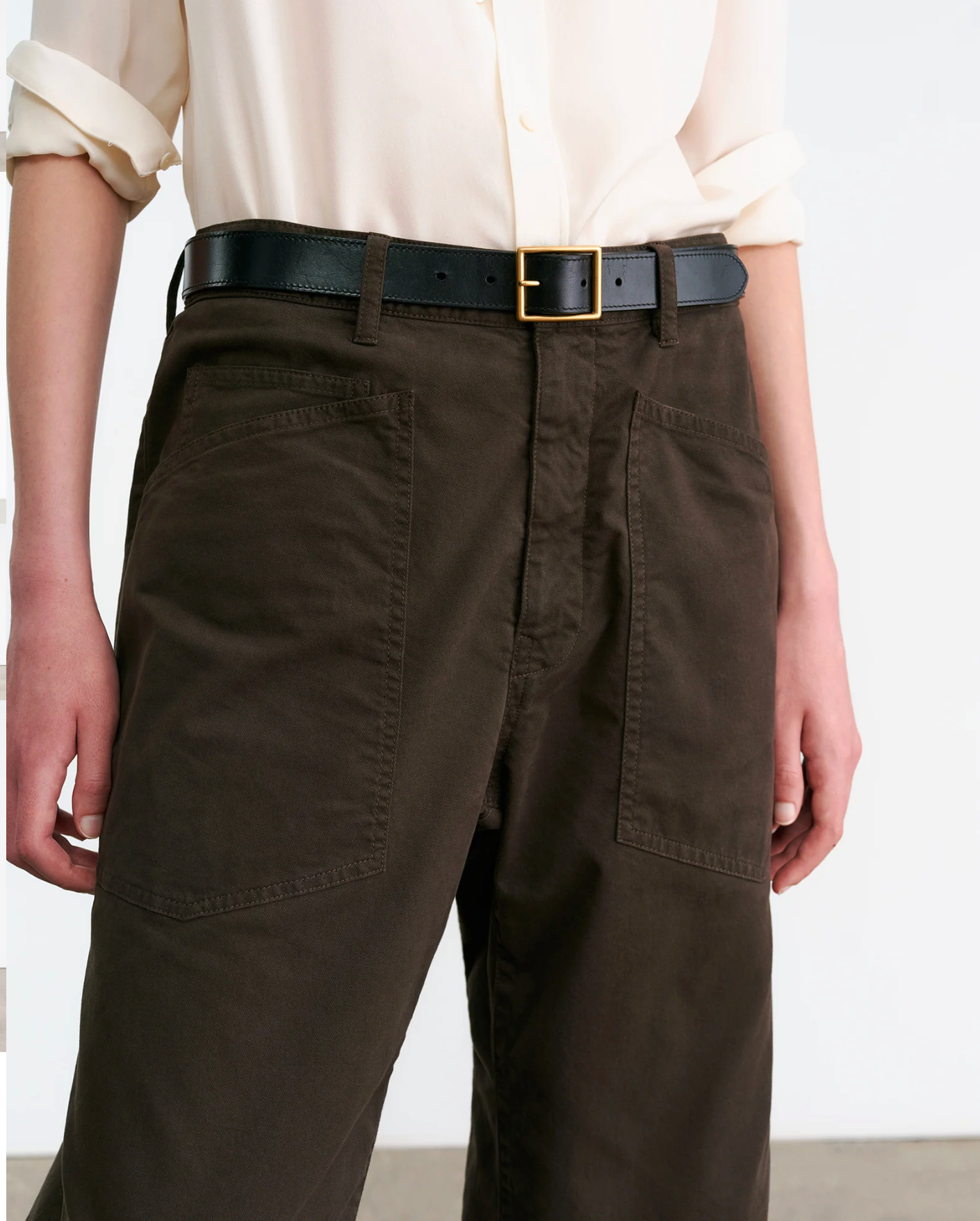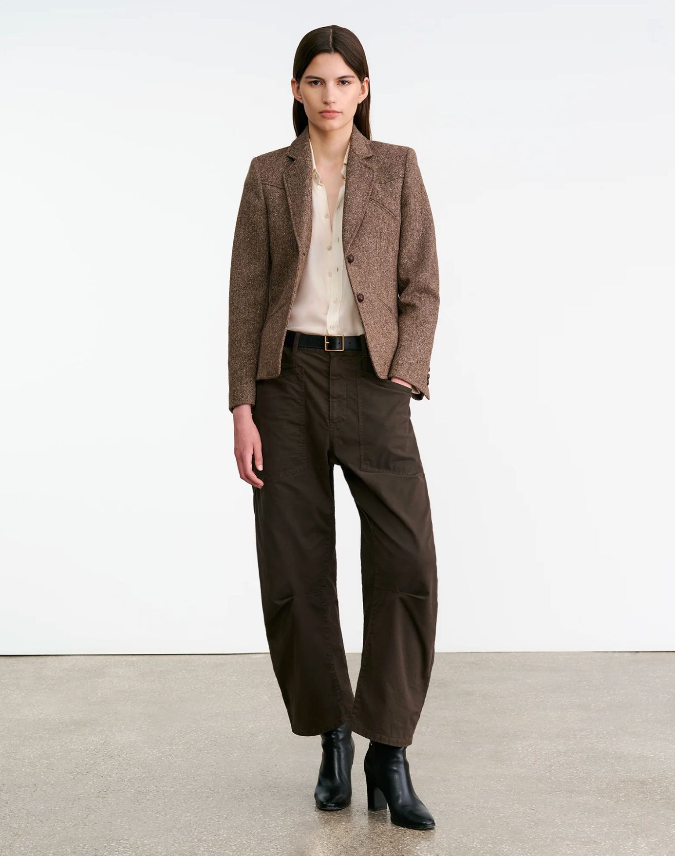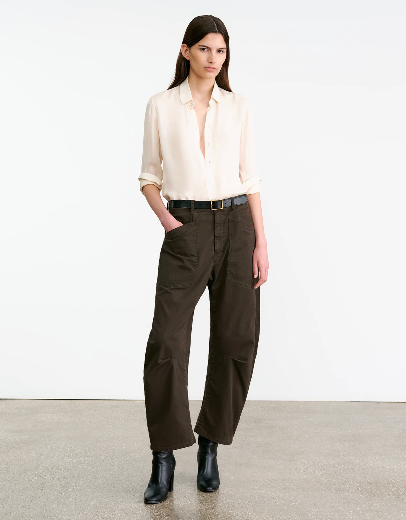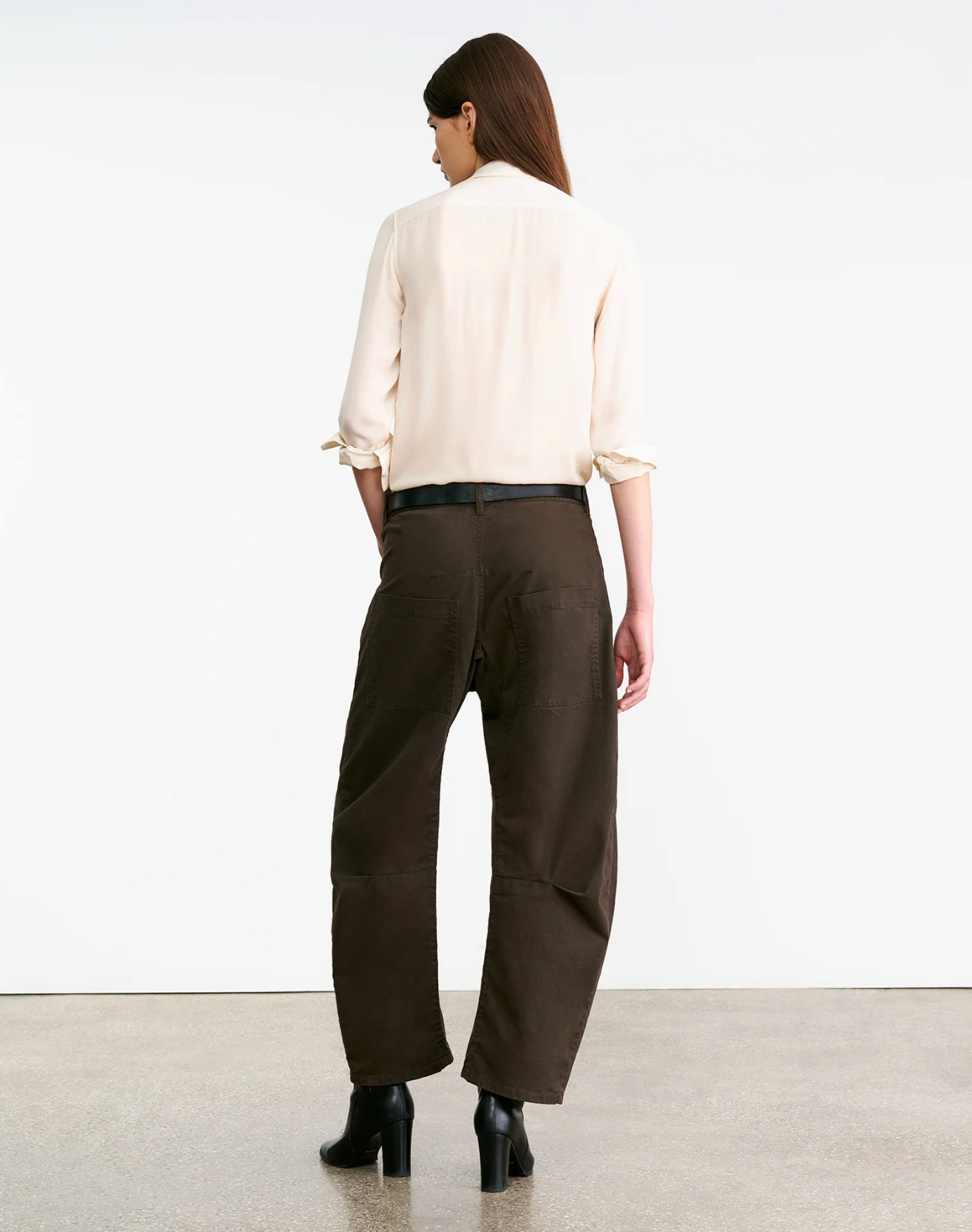 Designed with a sculptural approach to everyday dressing, the Shon Cotton Pant features a relaxed barrel-leg silhouette with a subtly curved shape that feels both modern and wearable. Thoughtful seam detailing at the knees and a gusseted inseam add structure and ease, while the mid-rise fit keeps it flattering and effortless. Finished with refined utility details, this is a standout pant that brings quiet edge to any look.