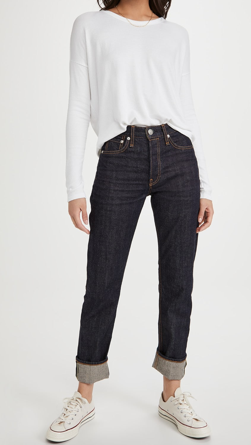The Long Sleeve Knit Tee by Rag & Bone is an elevated essential designed for easy wear and everyday comfort. Crafted from an ultra-soft rayon blend, it features a highlighted by a bold center seam and a curved hem that enhances its relaxed silhouette. Dropped shoulders and a loose fit complete the effortlessly refined look—perfect for layering or wearing solo.