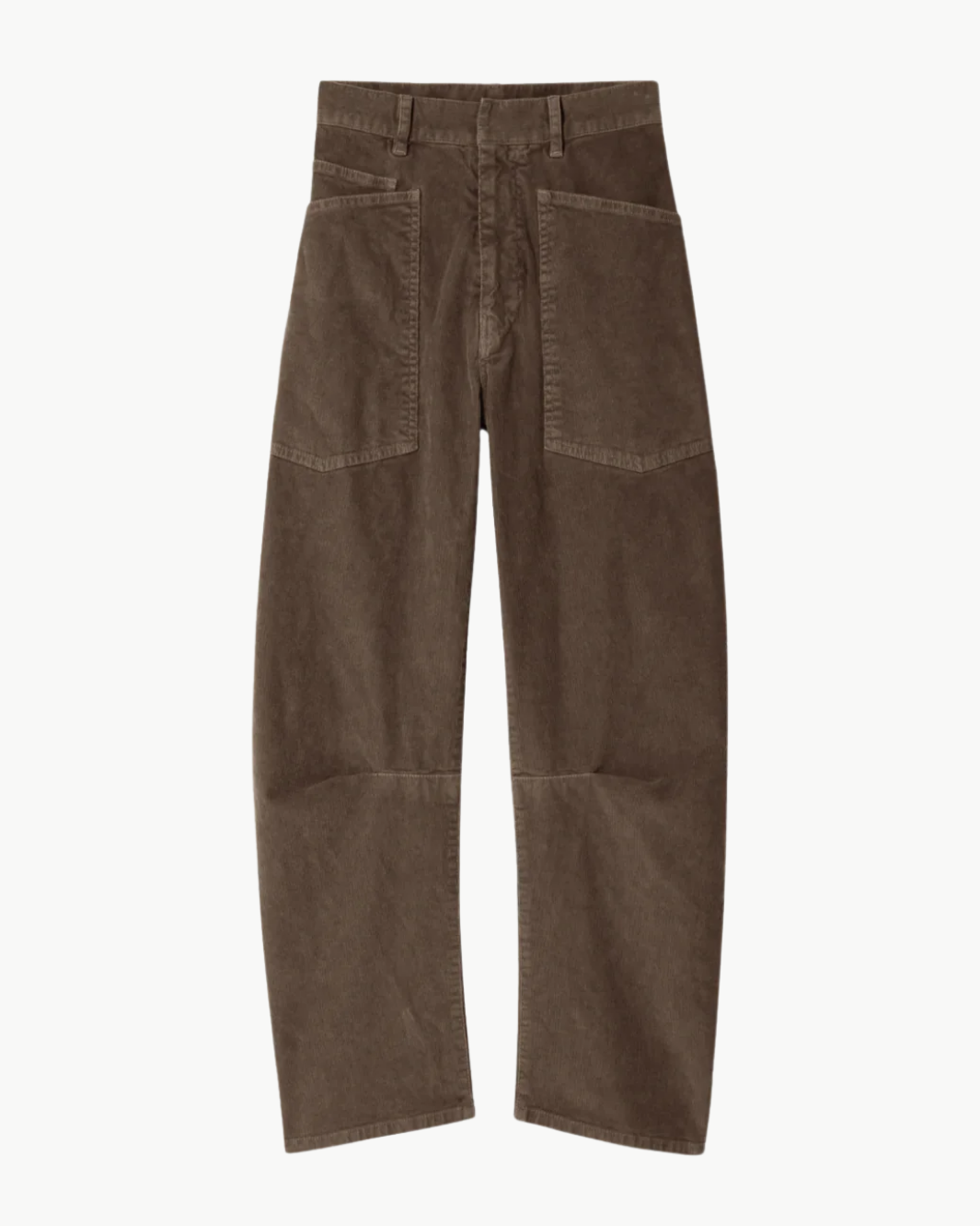 The Nili Lotan Shon Pant redefines casual tailoring with its uniquely curved barrel-leg silhouette and relaxed, mid-rise fit. Crafted in the USA from a soft, durable cotton blend with just a touch of stretch, it features seam detailing at the knees and a gusseted inseam for ease of movement. Top-stitched front and back patch pockets, a hidden hook-and-bar and stay button closure, and subtle tailoring details complete this effortlessly modern essential.