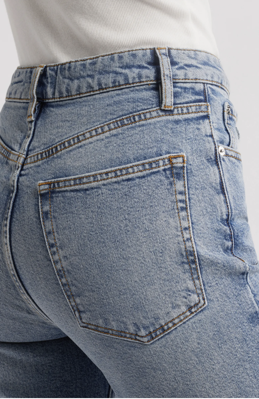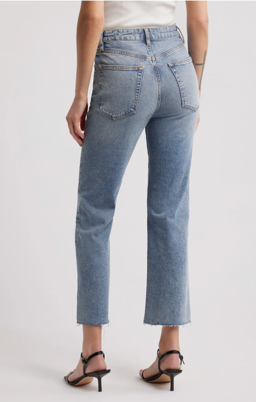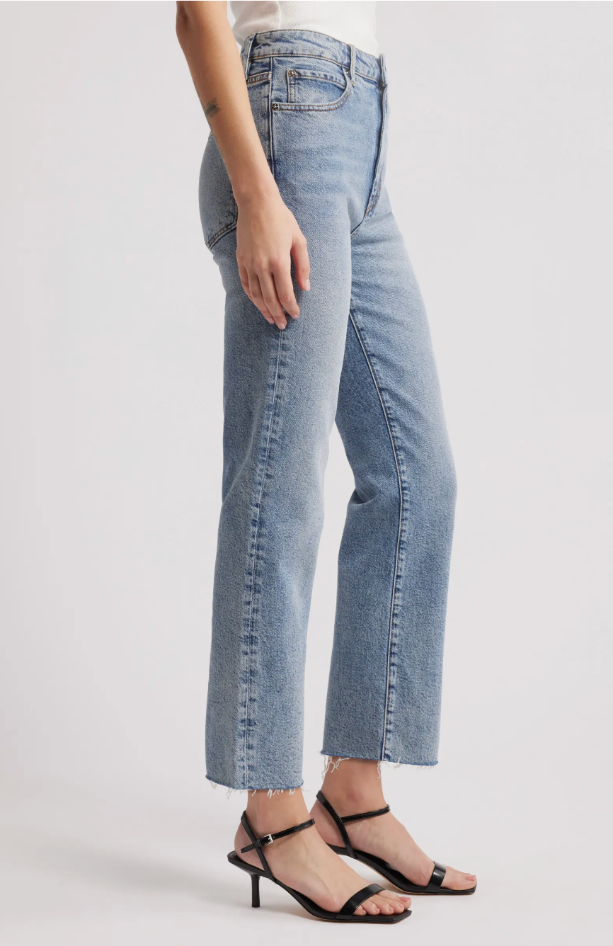 The Ruler High-Rise Crop Jeans deliver a clean, modern silhouette with a touch of edge. Designed with a high rise and a slightly flared, cropped leg, they balance everyday ease with timeless denim styling. Classic five-pocket construction and a raw hem give them a lived-in, effortless finish.