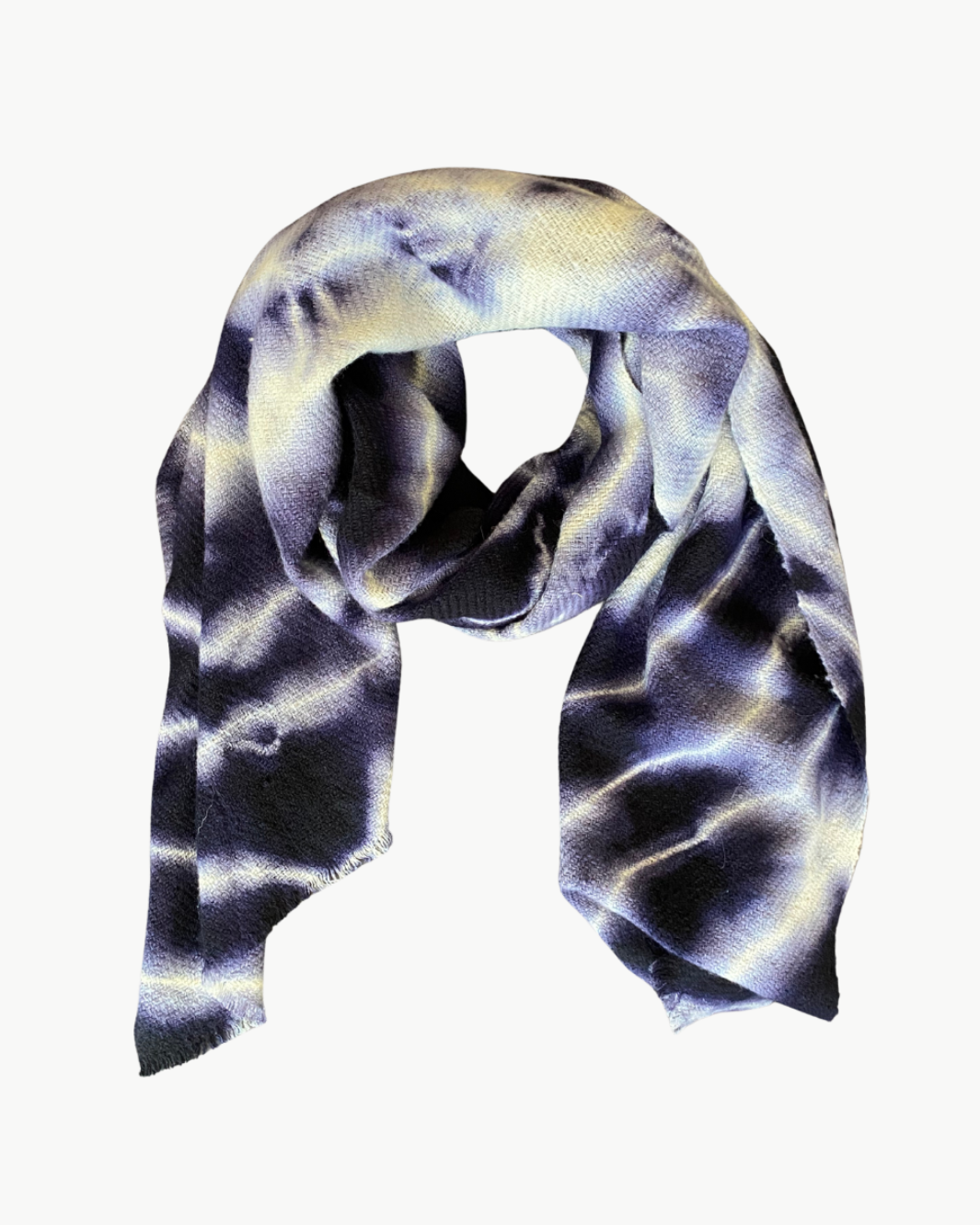 Intricate and sophisticated with a full shibori pattern, this 100% fine cashmere oozes urban cool. Shibori is an ancient Japanese manual resist dyeing technique to create patterns onto fabric.