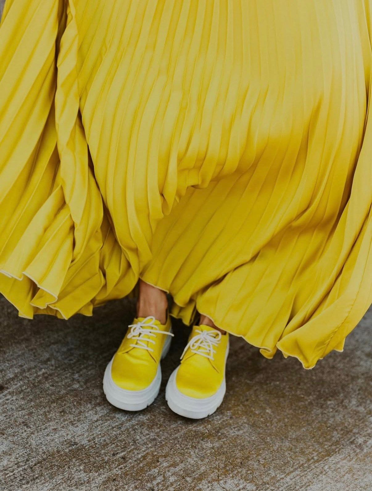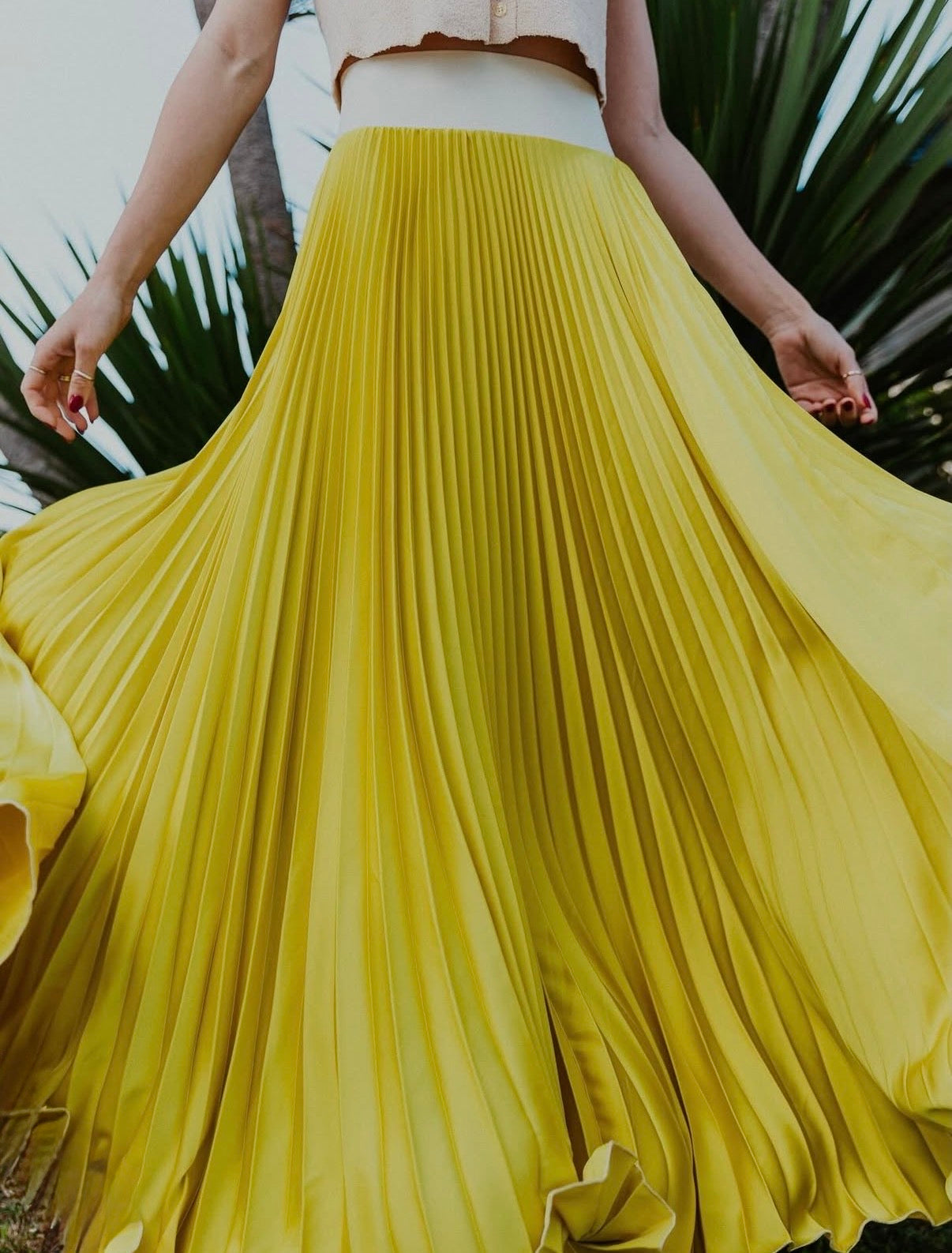 A timeless statement piece with effortless movement, the Summer Satin Skirt in Chartreuse brings vibrant color and elegant texture to any wardrobe. Locally hand-pleated in a classic sunburst design, this fluid maxi silhouette drapes beautifully and catches the light with every step. The wide ivory elastic waistband offers comfort while creating a flattering, defined waist—making it an easy choice for both special occasions and elevated everyday styling.