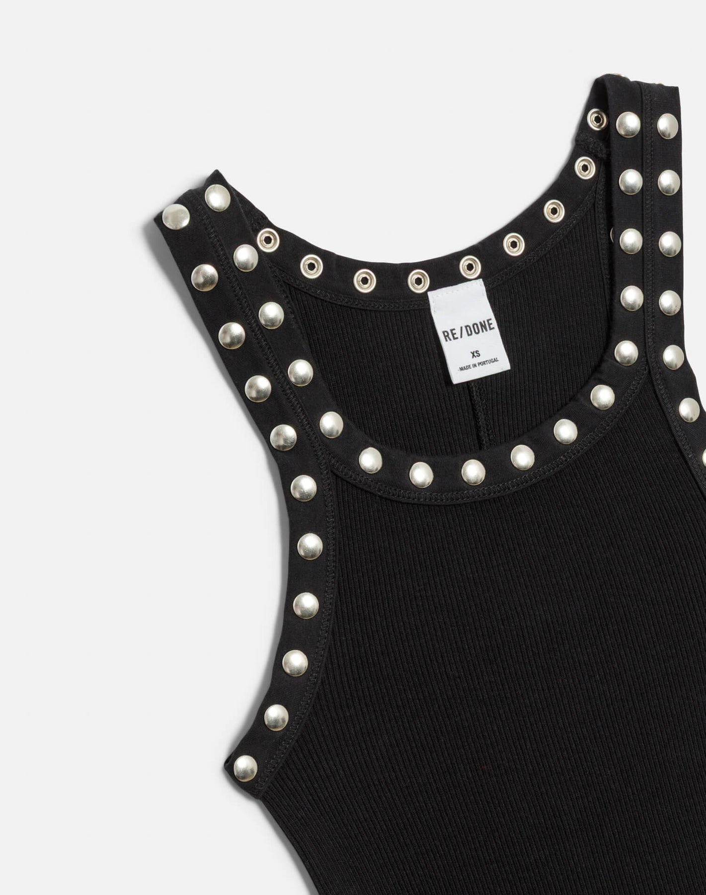 STUDDED RIB TANK IN BLACK - Romi Boutique