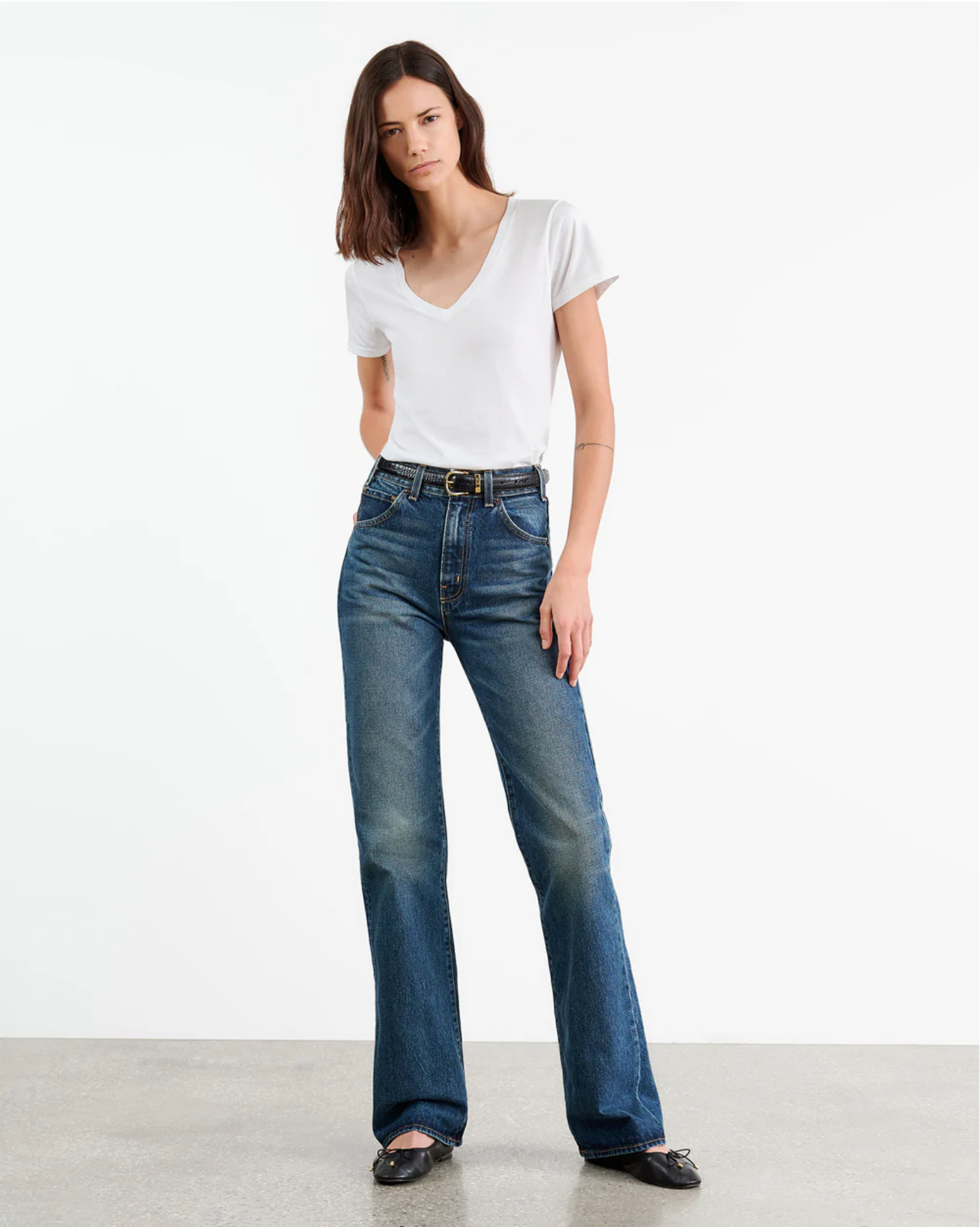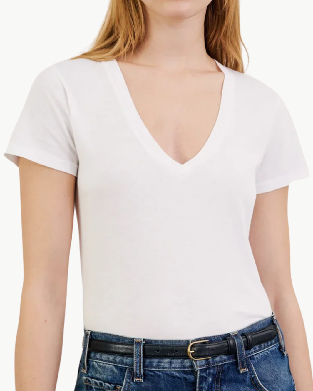 The new Carol V-Neck Tee is a wardrobe essential—effortlessly cool with a deep V neckline and relaxed silhouette. Crafted from premium American Supima cotton, it offers a soft, lived-in feel with a flattering drape. Finished with self-binding along the neck and sleeves, this vintage-inspired tee is a timeless go-to for everyday wear.