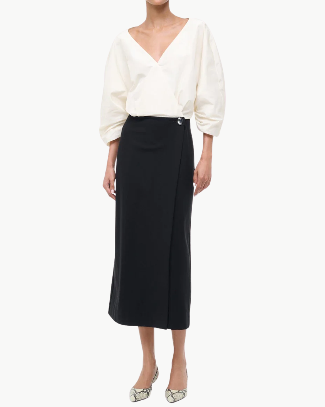 The Orion Dress delivers modern elegance through contrast—balancing sculptural sleeves, a deep V-neckline, and a timeless wrap silhouette. Its mix of taffeta and ponte creates shape, structure, and fluidity, making it a standout piece for evenings, events, and any moment that calls for polished impact.