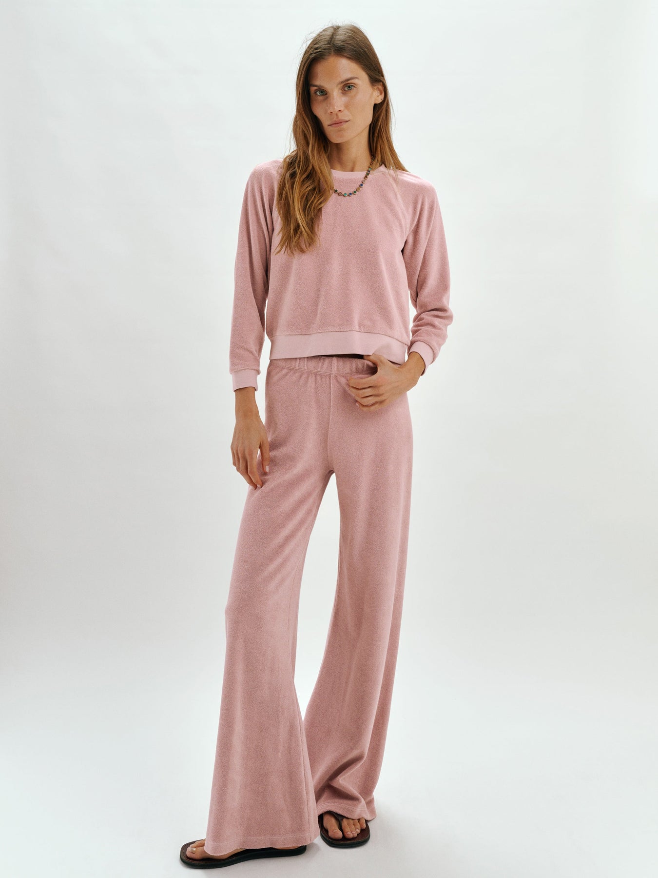 Zephyra Pants in Terry combine relaxed comfort with a bold, modern silhouette. Crafted from soft terry toweling, this easy pull-on style features a flattering high waist and a relaxed fit that flows into a wide-leg shape. Exaggerated ankle detailing adds a distinctive finish, giving these pants an elevated edge while maintaining laid-back comfort.