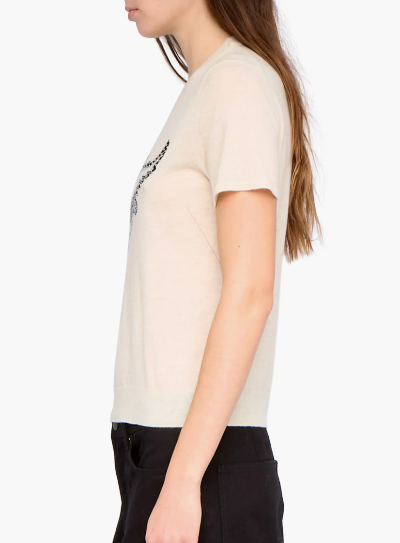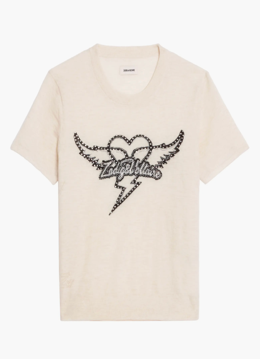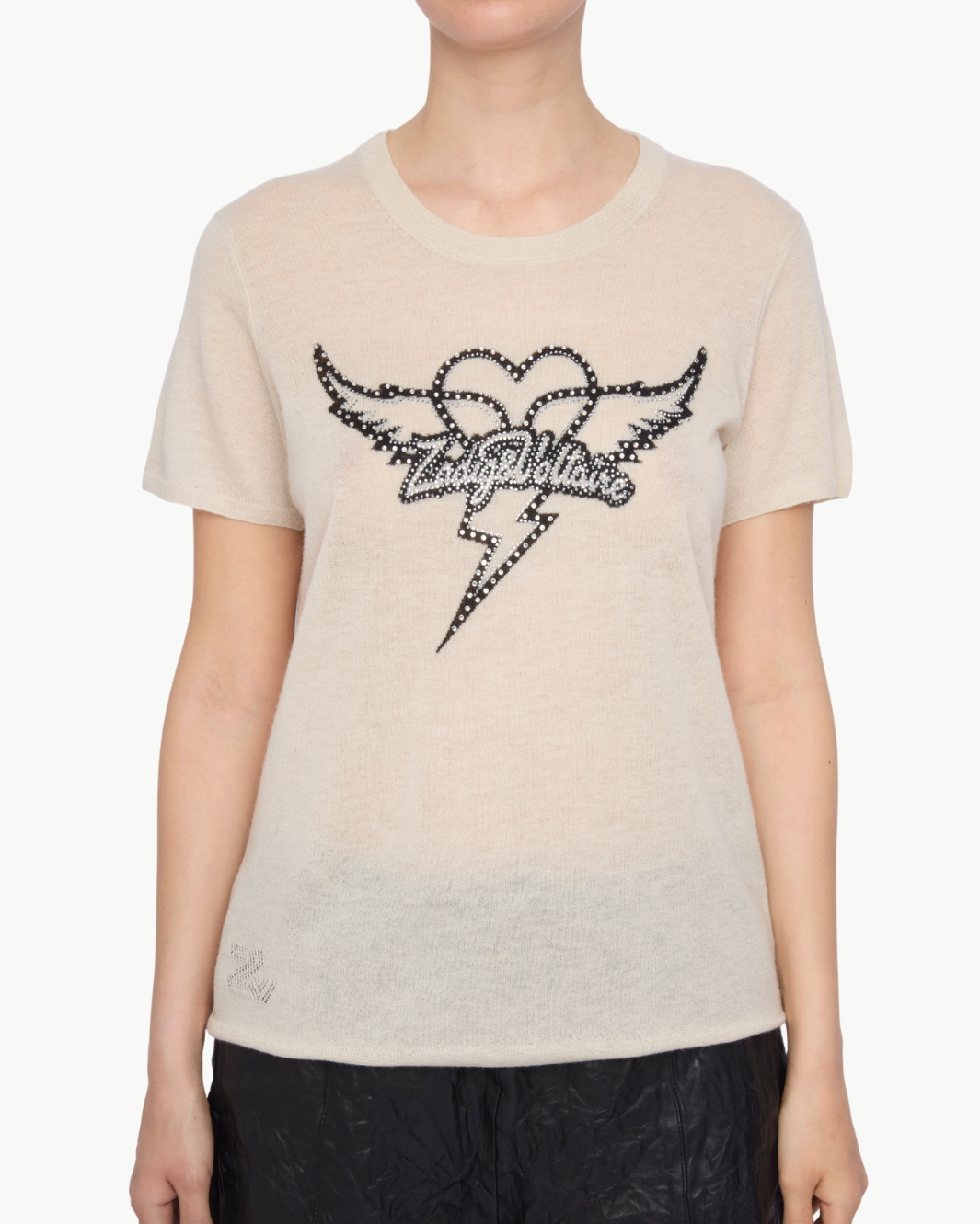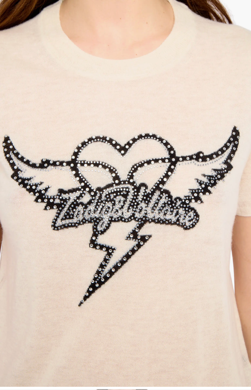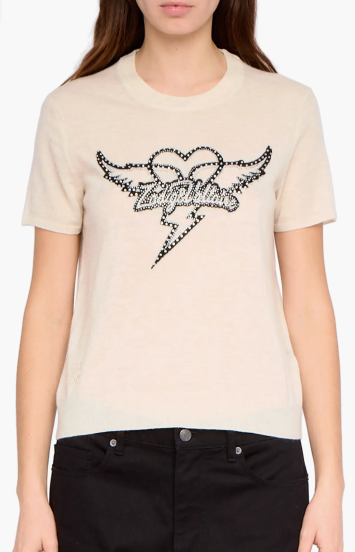 The Idal Aero Heart Cashmere Sweater brings a refined dose of sparkle to an everyday silhouette. Crafted from pure cashmere, this short-sleeve knit is elevated with crystal logo embellishments that add modern glamour without overwhelming the design. Polished yet effortless, it’s an easy statement piece that works year-round.