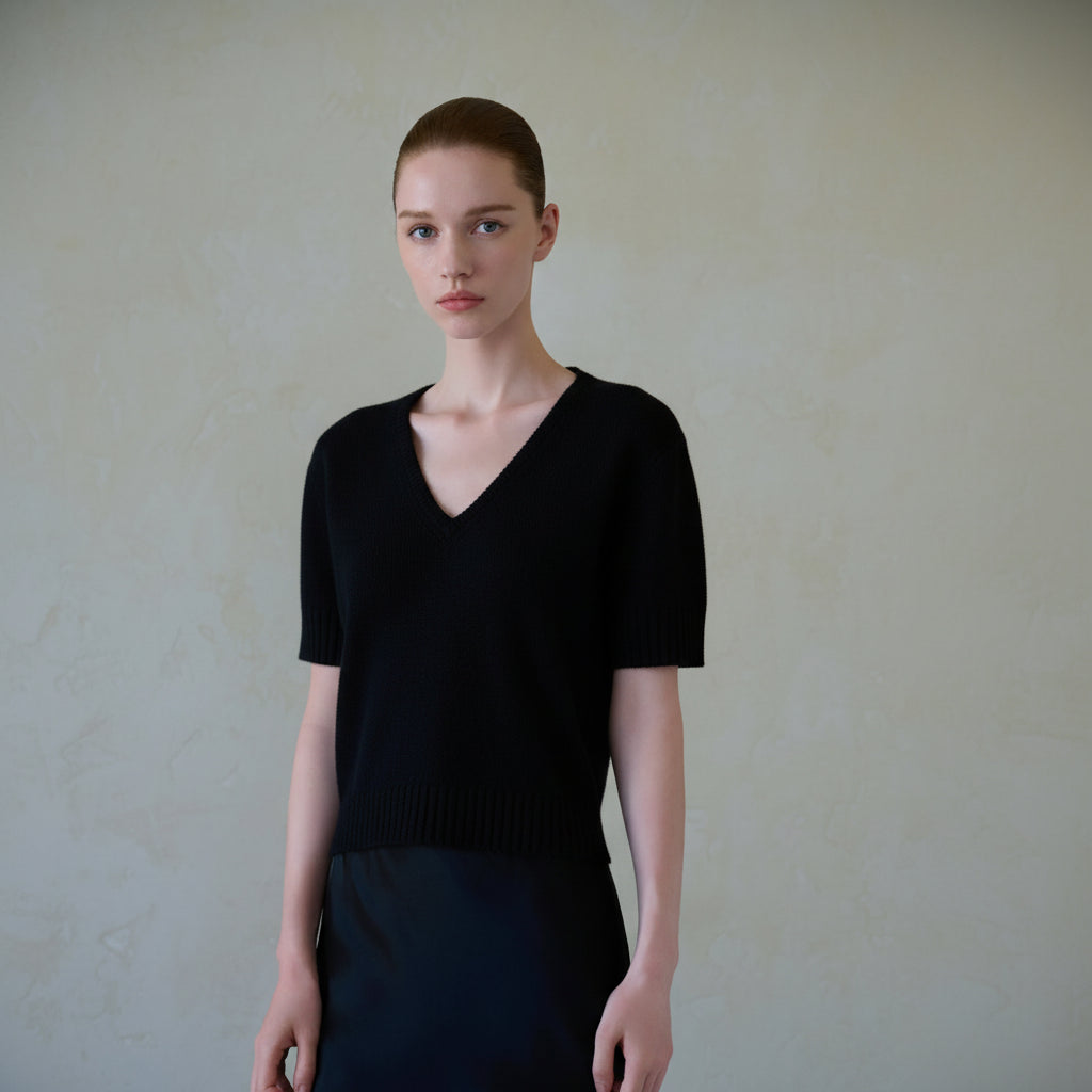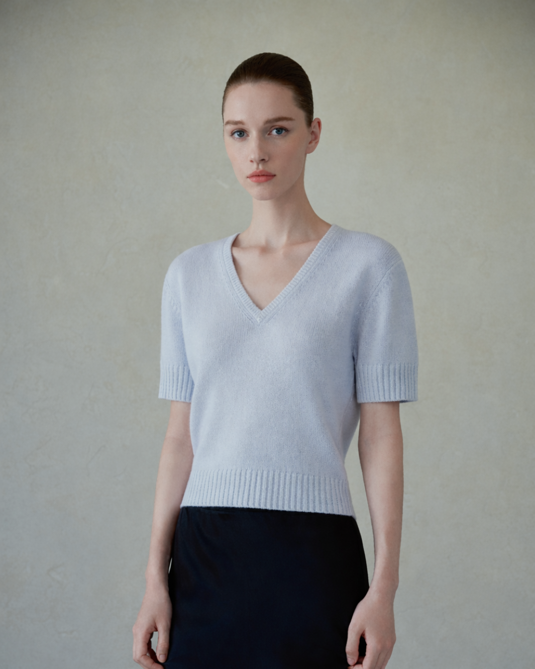 The Eira V Neck Sweater is a timeless cashmere essential, designed with a clean silhouette that feels both polished and effortless. Crafted in pure cashmere, this short sleeve V-neck sweater offers a refined drape and soft hand feel, making it an easy choice for elevated everyday wear.