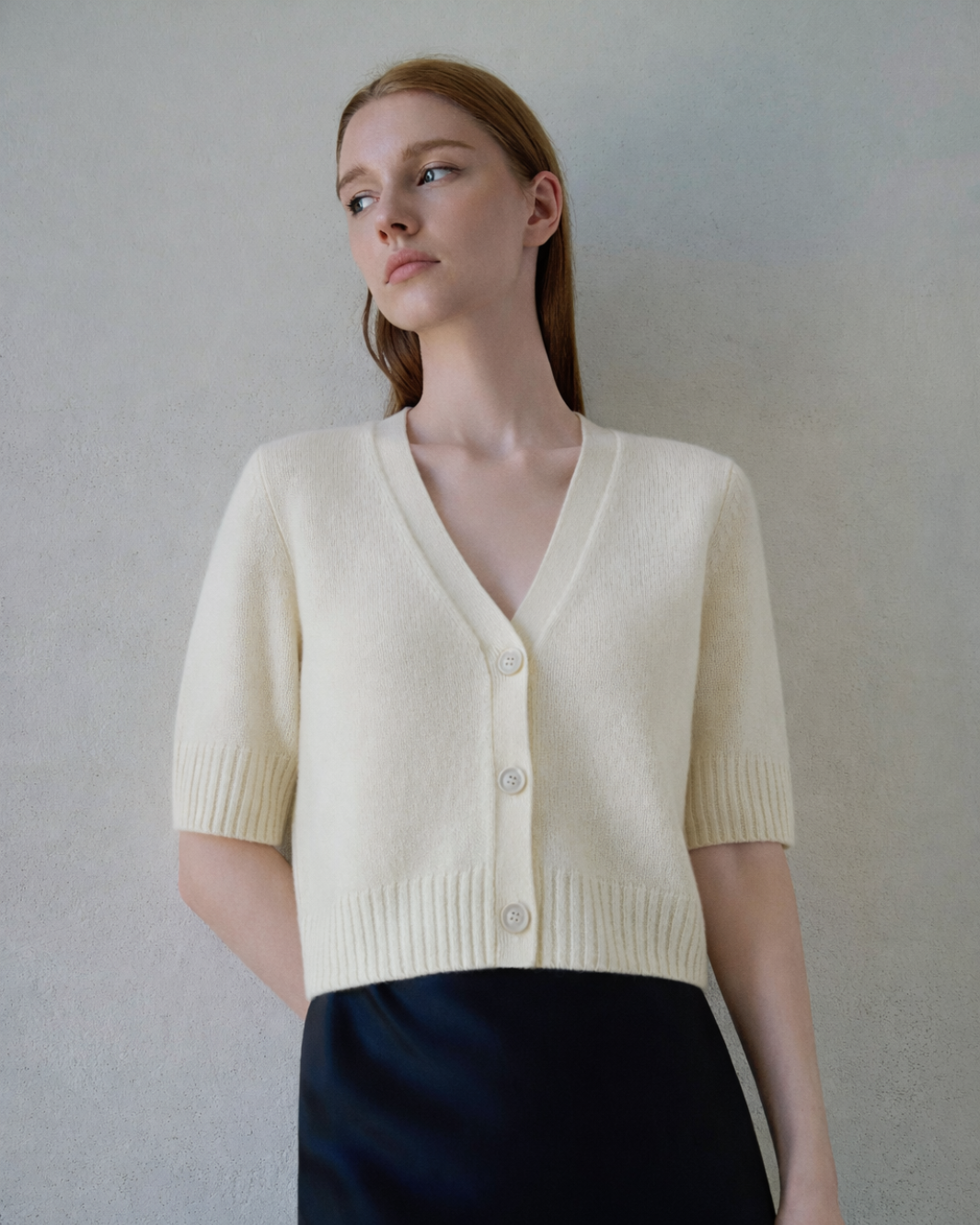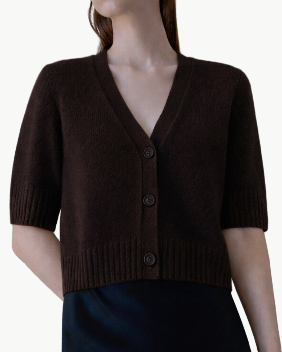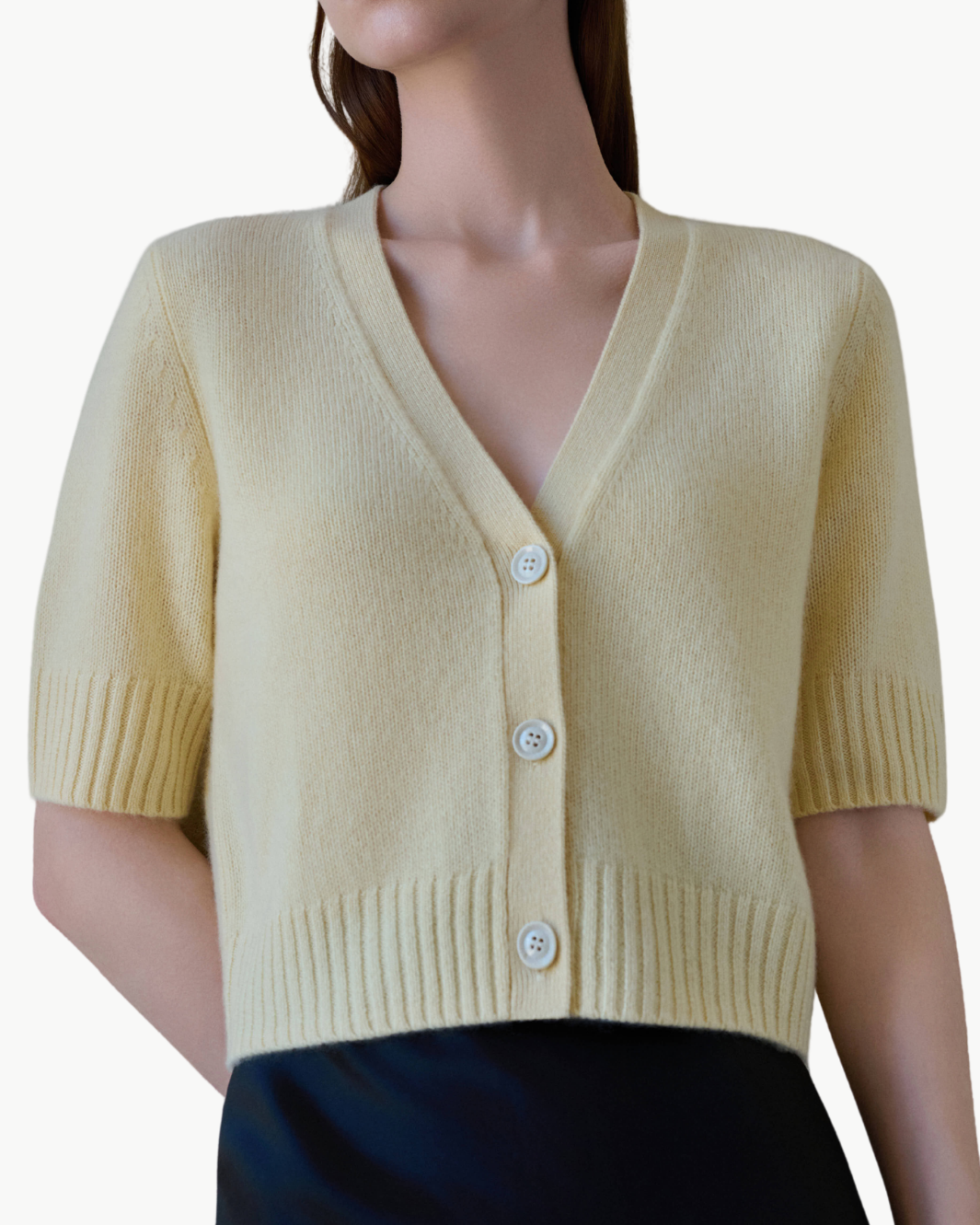 The Elodie Cardigan is a refined cashmere sweater designed with a timeless silhouette and effortless versatility. Featuring a flattering V-neckline, short sleeves, and a classic button-front design, this cardigan sweater offers a polished yet relaxed look that transitions seamlessly from day to evening.
